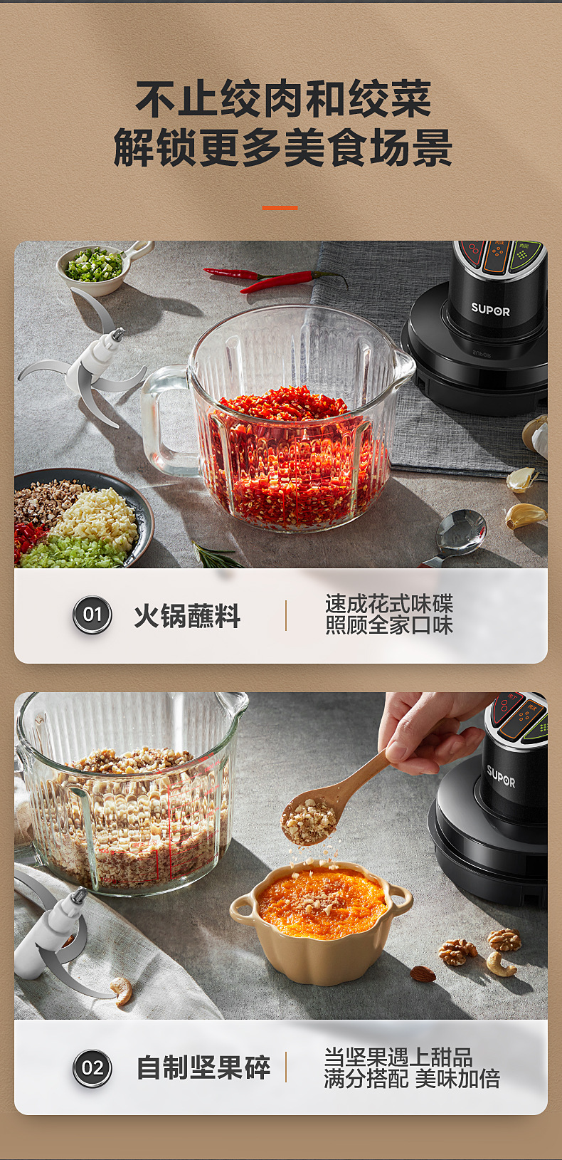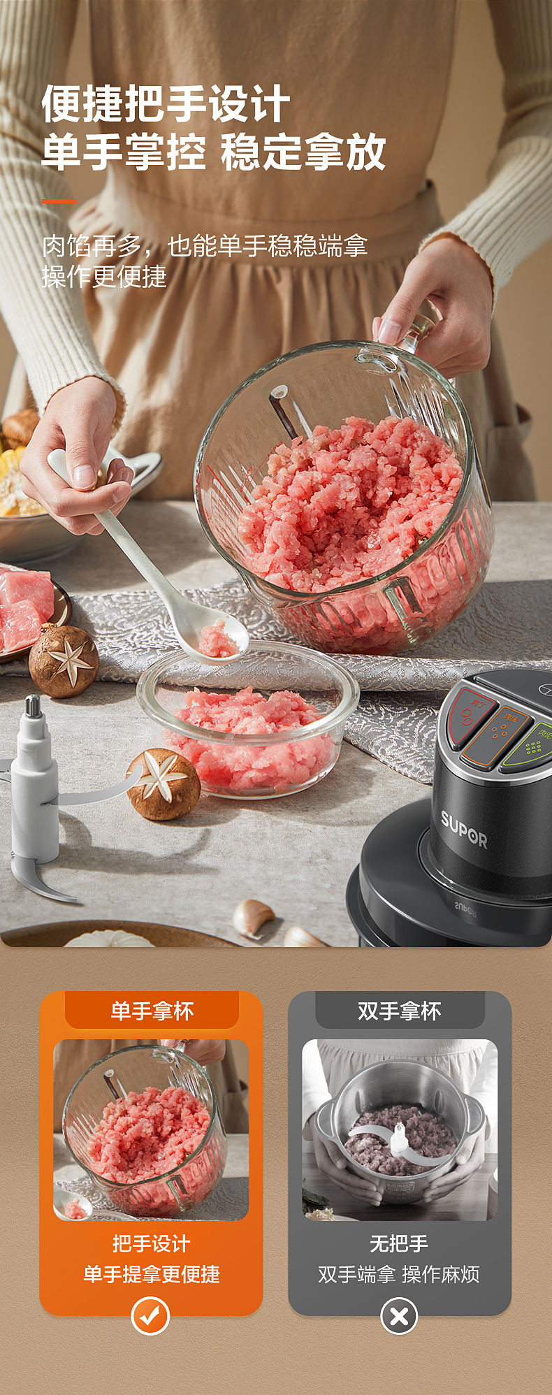 苏泊尔绞肉机家用电动小型多功能碎肉料理机打碎馅机搅拌厨房电器