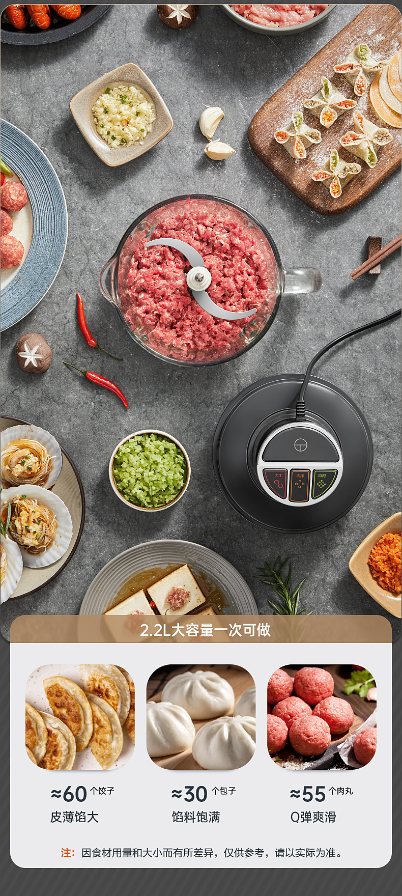 苏泊尔绞肉机2.2L大容量不锈钢多功能料理搅拌机辅食机 JR65-G220