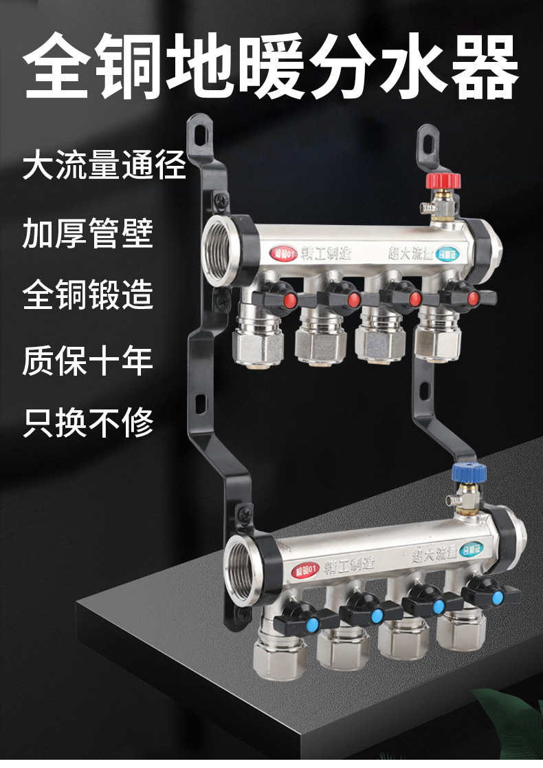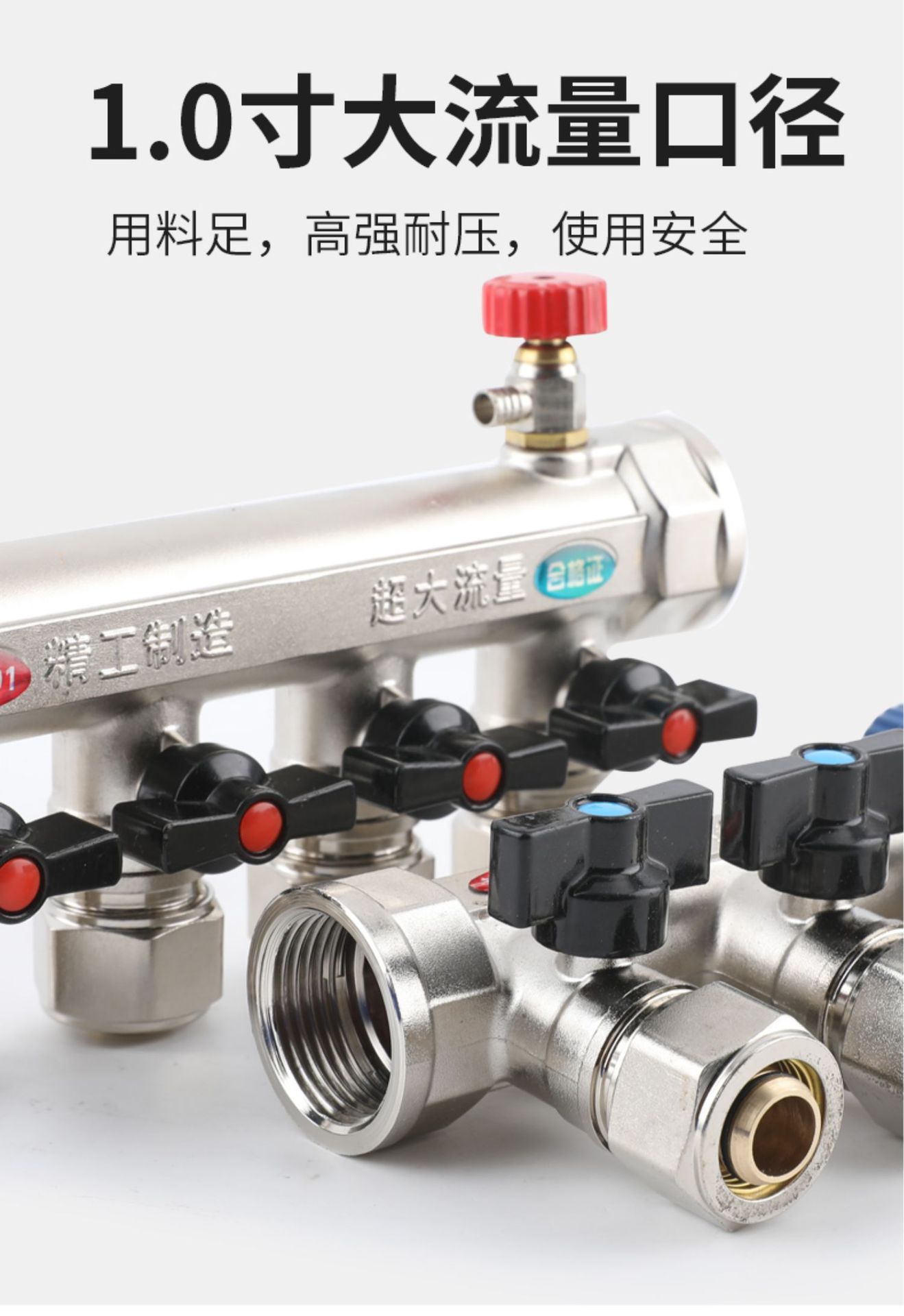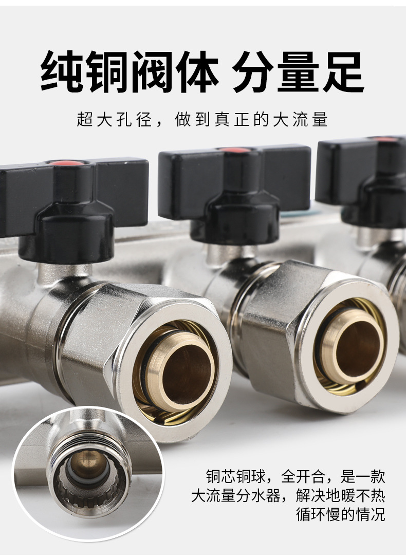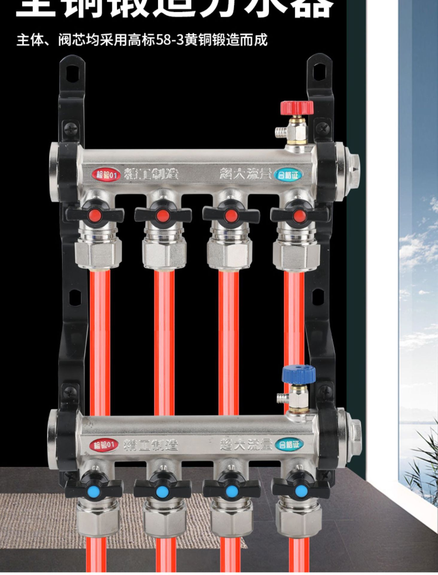 全銅大流量一体地暖分水器地熱家庭用分水器アセンブリ集水器カバーバルブ