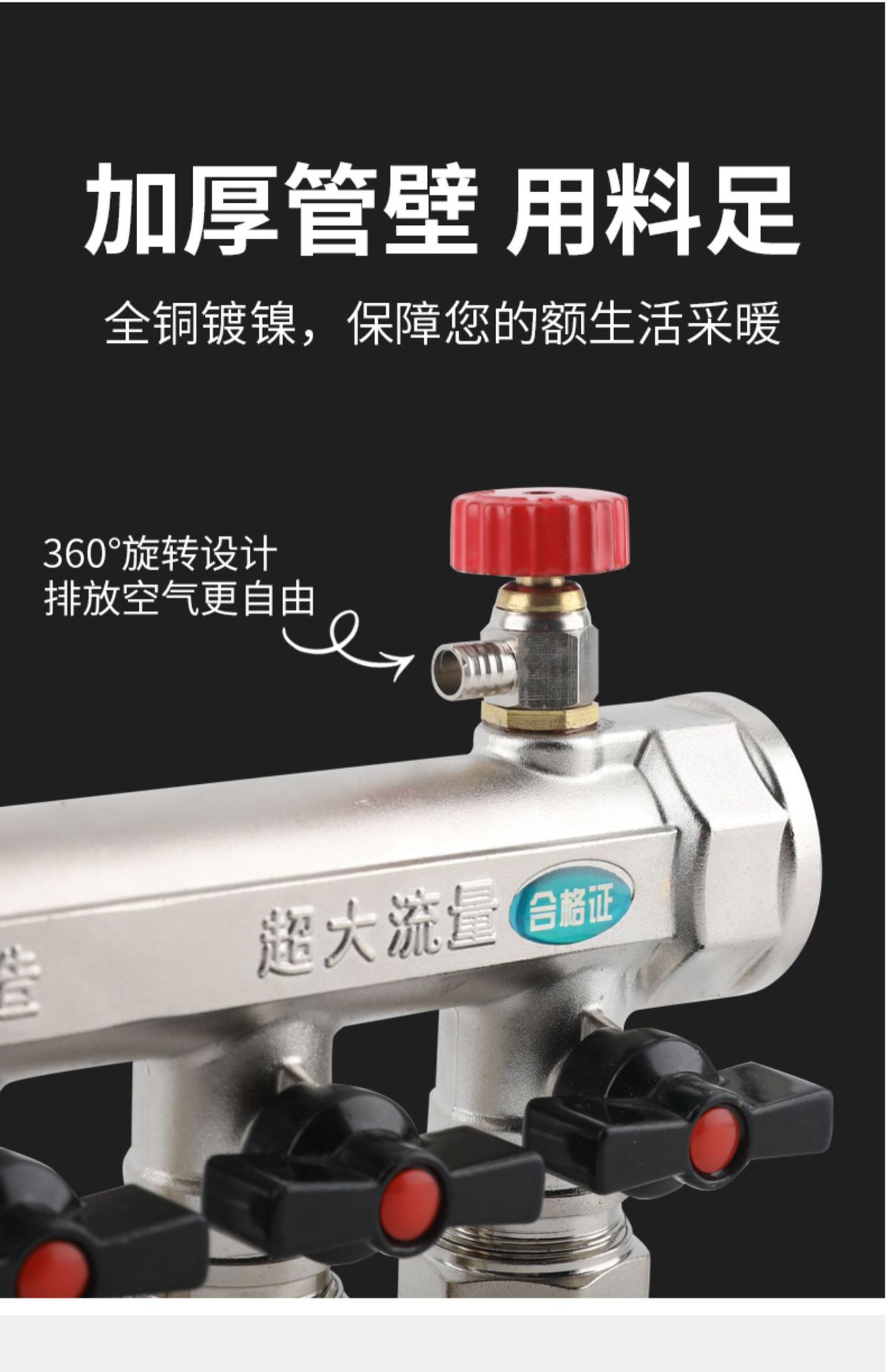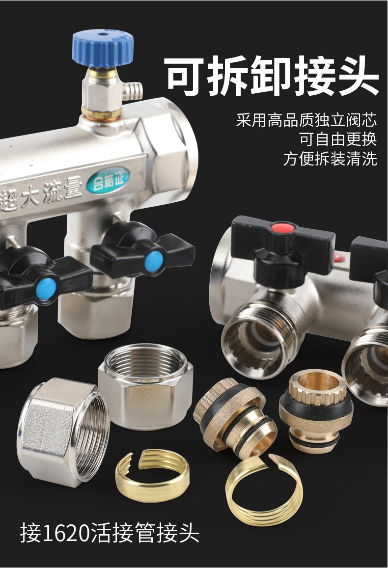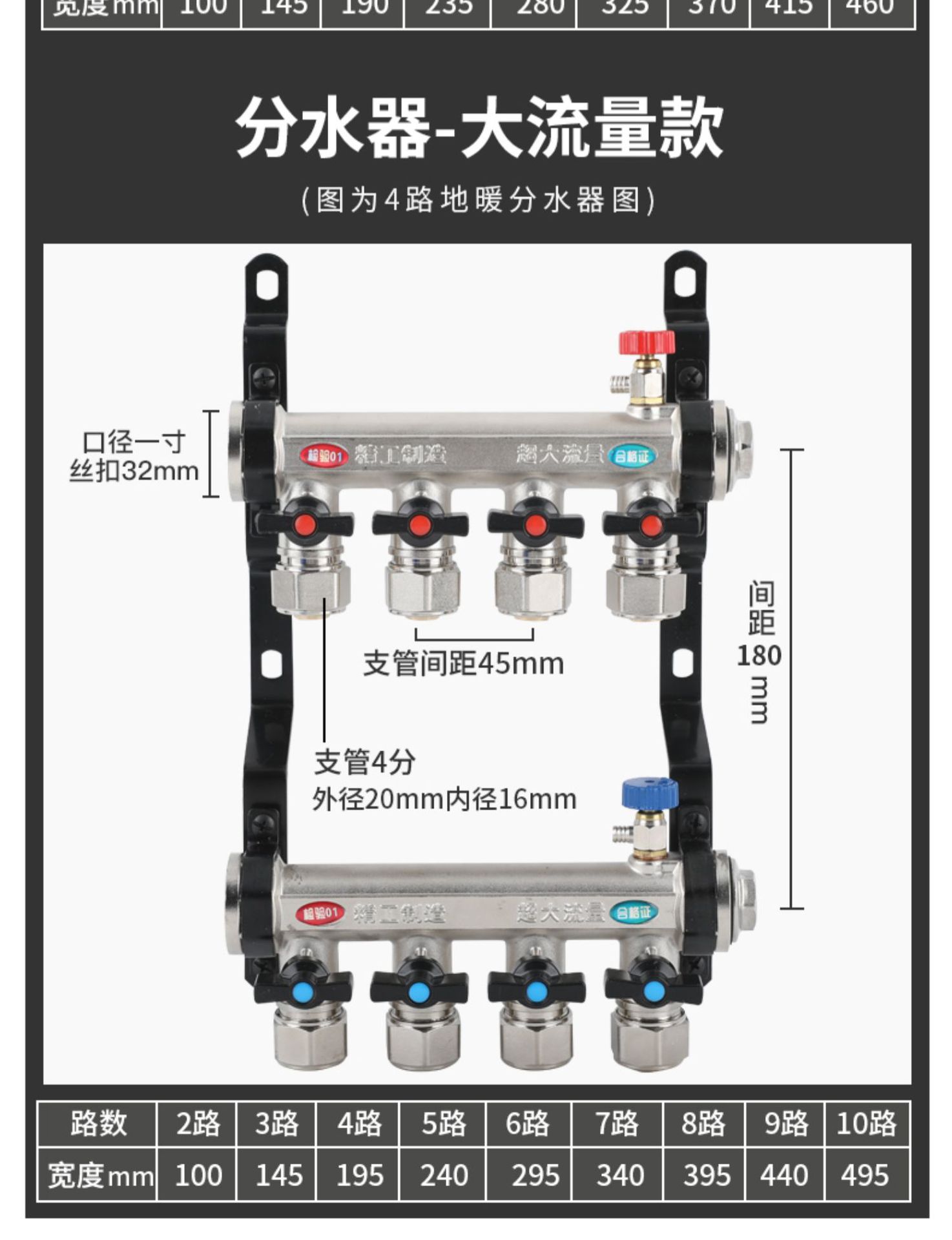 全銅大流量一体地暖分水器地熱家庭用分水器アセンブリ集水器カバーバルブ