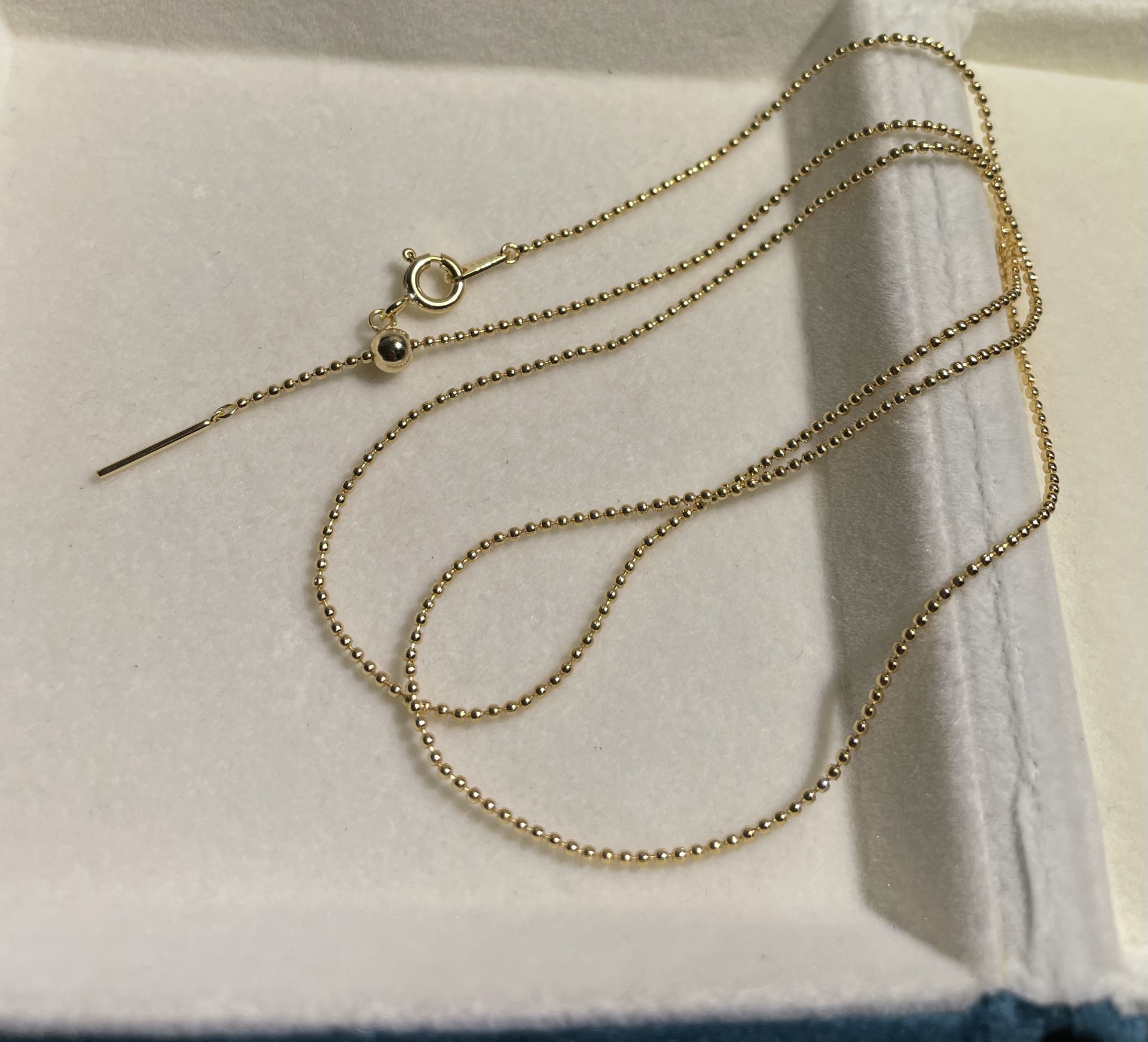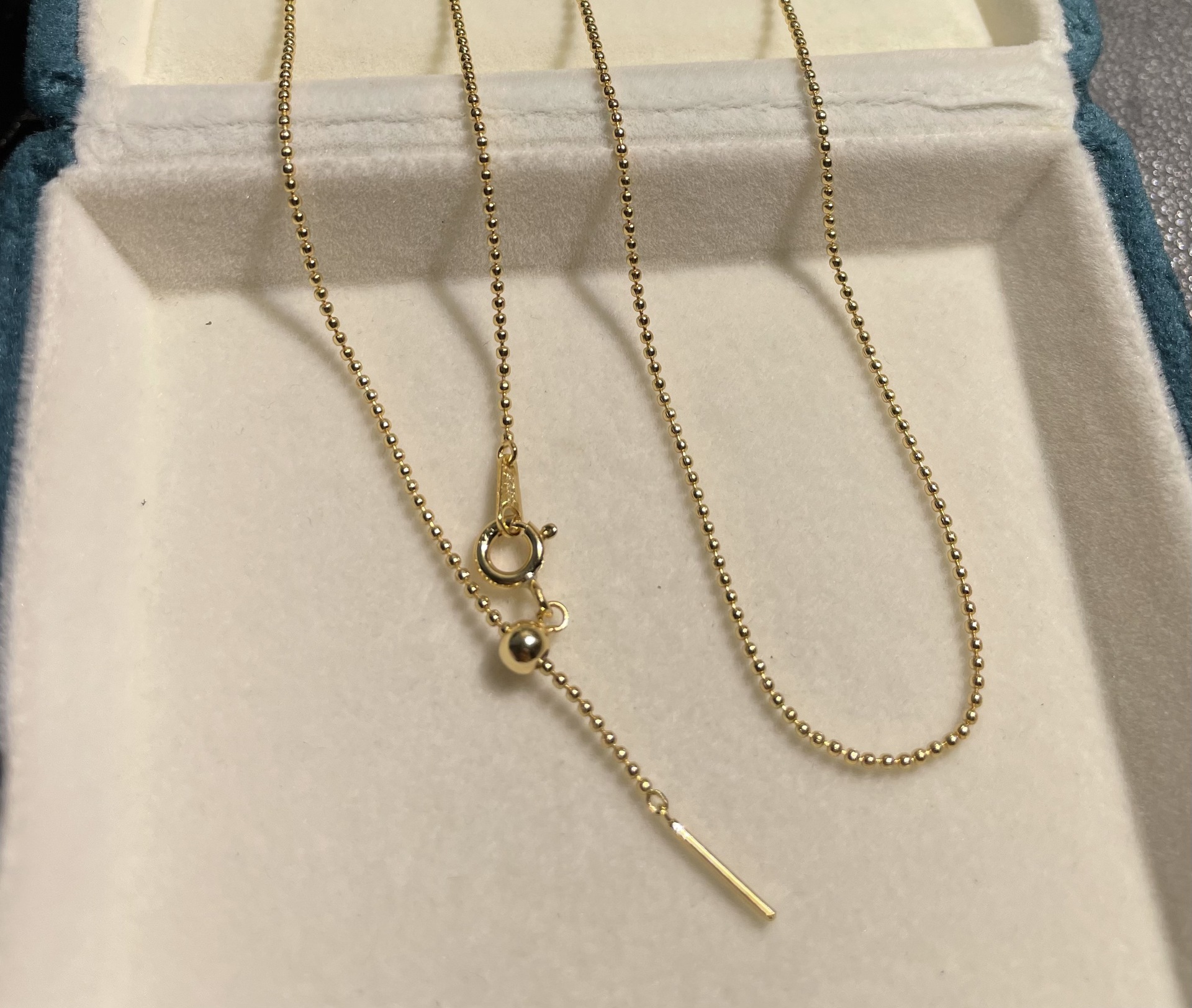 純銀万能針式豆チェーンビーズチェーン55cm鎖骨チェーン調節可能なロングネックレス
