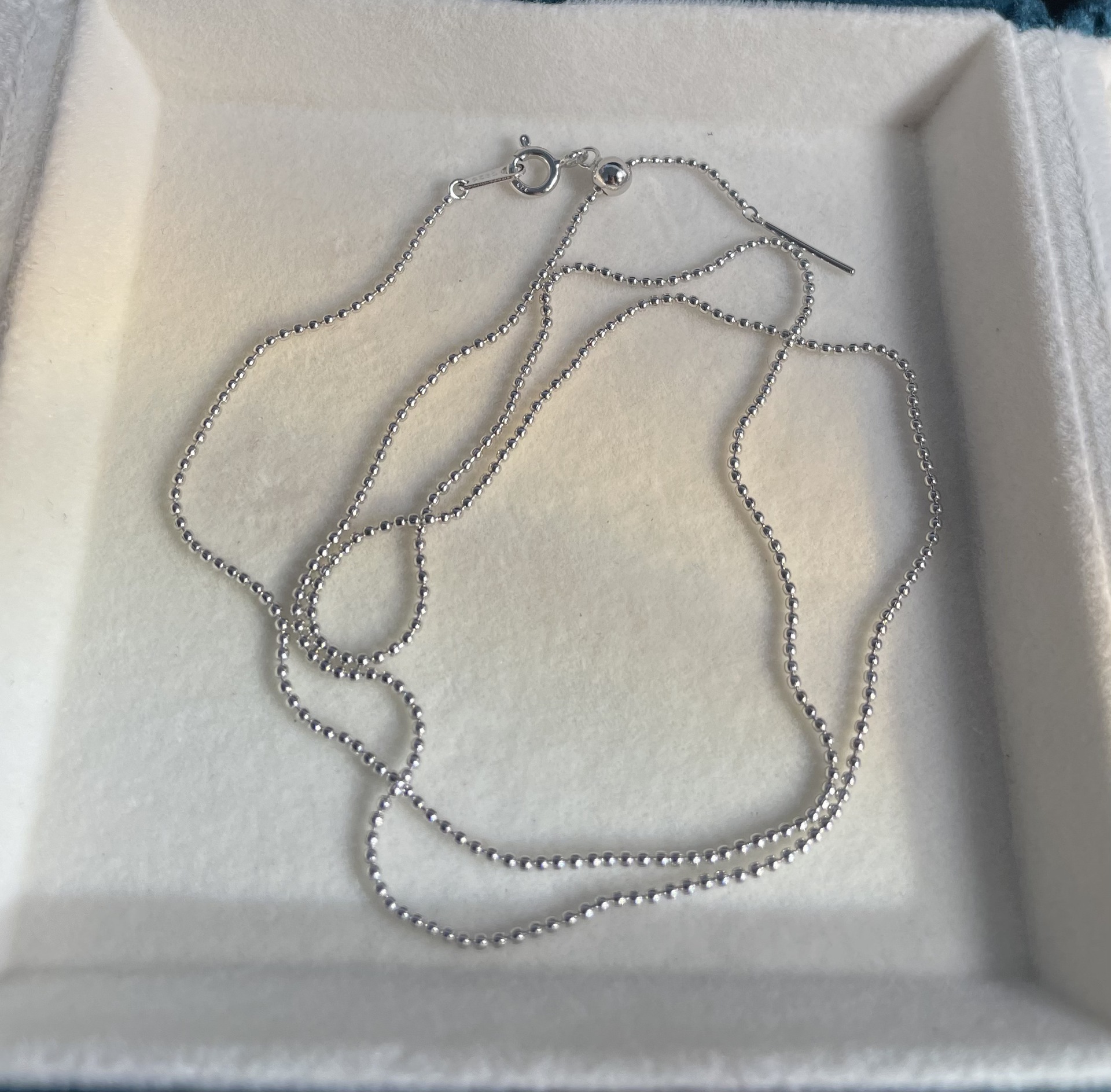 纯银万能针式豆豆链 珠珠链 55cm锁骨链可调节长款项链