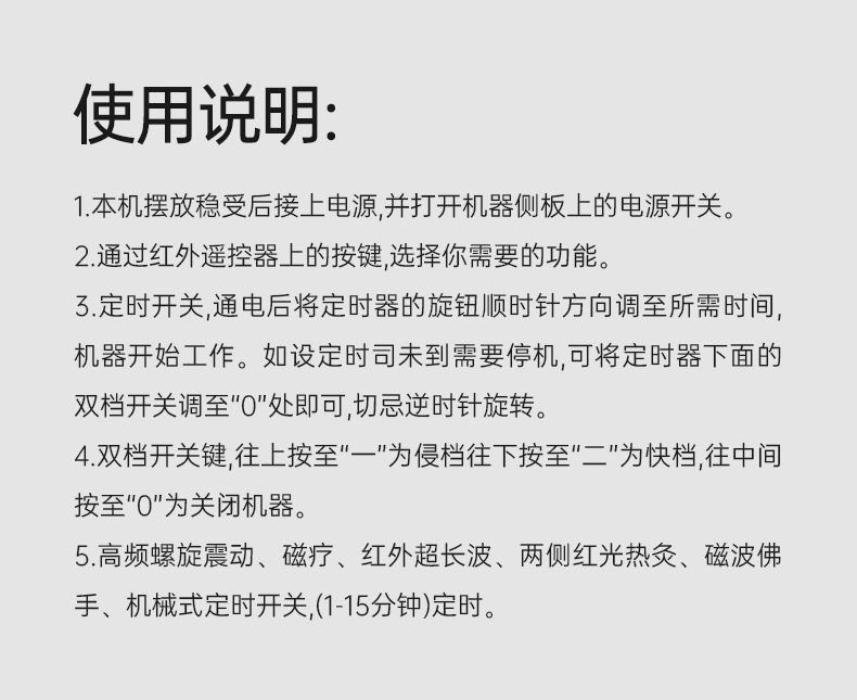 機能 定時,赤外線理学療法,手持ちワイヤーコントロール