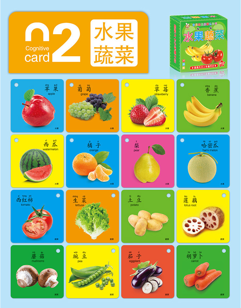 子供啓蒙子供知育カード赤ちゃん識字カード果物動物玩具夜市早教カード贈呈バックル