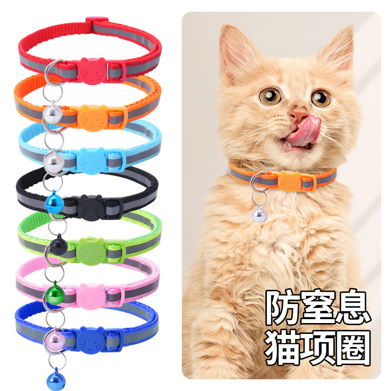 跨境爆款宠物项圈猫扣反光猫头安全扣分离式猫咪狗狗铃铛项圈现货