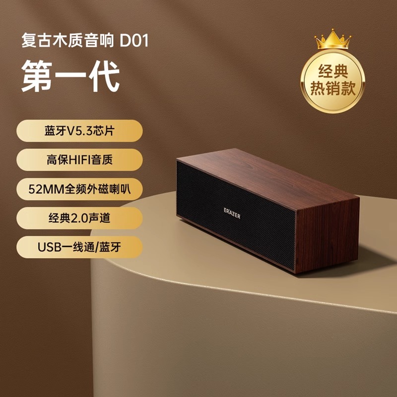 エナジャイザーオーディオ Bluetooth 5.3 木製ボックスデスクトップ有線デスクトップホームレトロ小型小型スピーカー D01