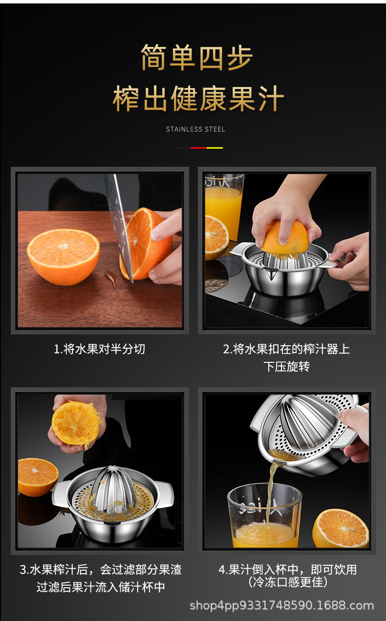 304ステンレス手動ジューサー家庭用オレンジジュース押出機小型レモンジューサー神器オレンジジューサー