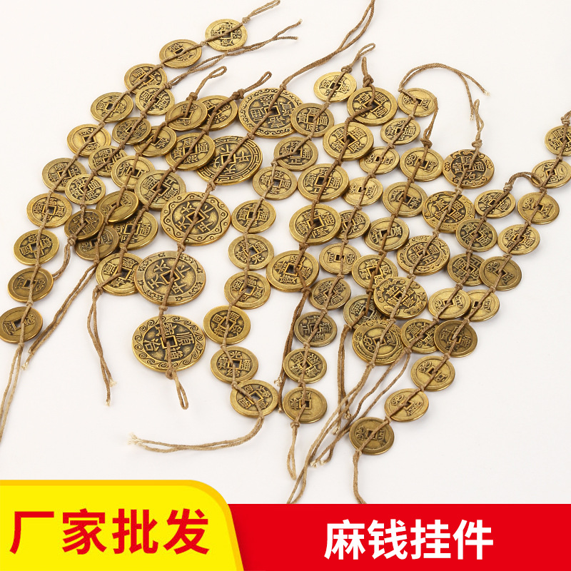 メーカー卸売り黄銅厚五帝麻銭十帝銭金金麻縄ストラップ厚さ2.5センチ2.8センチ