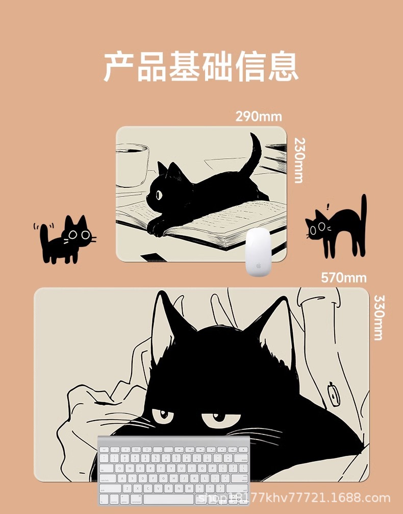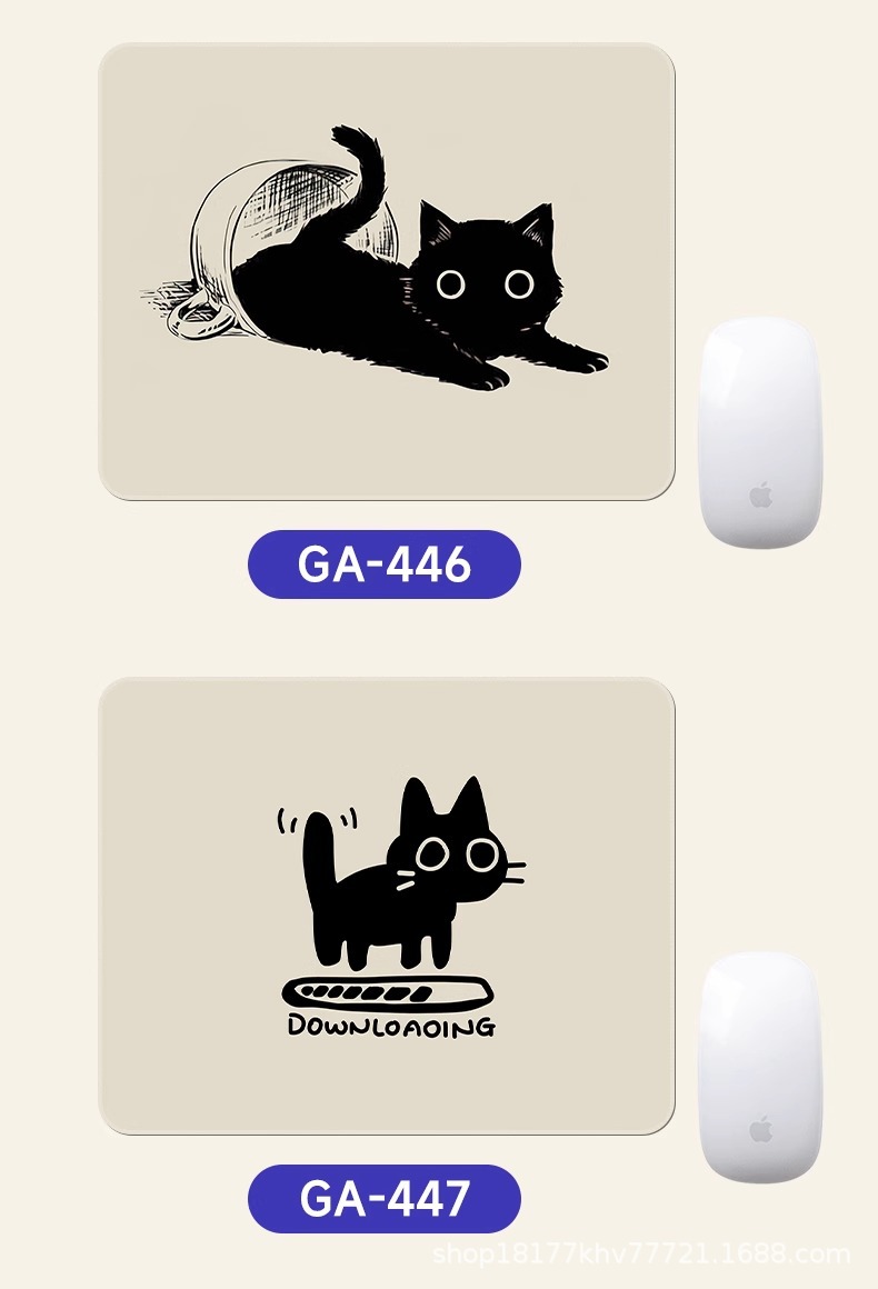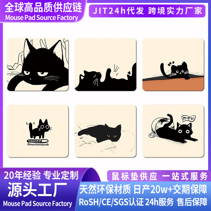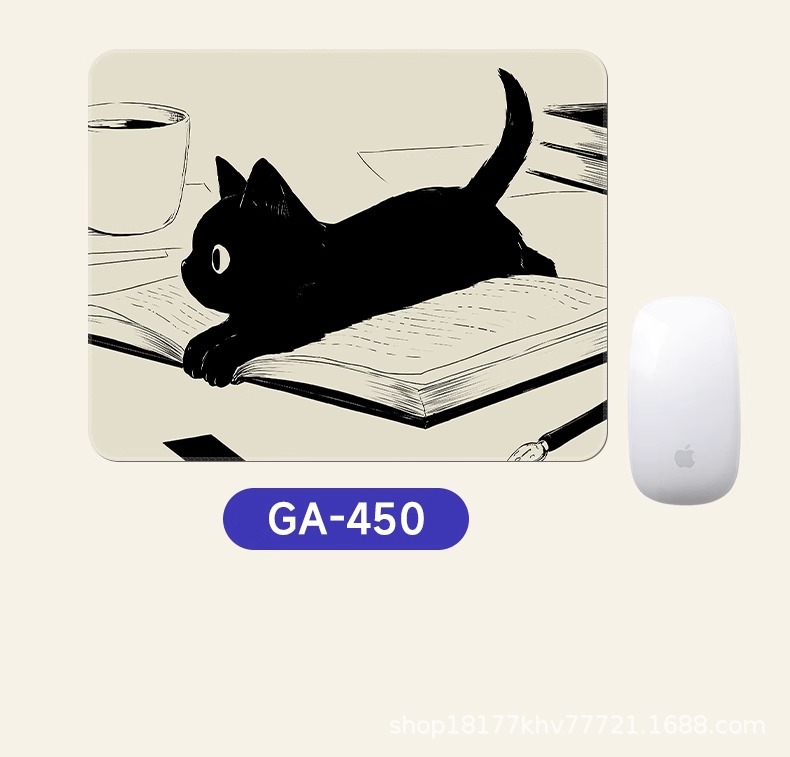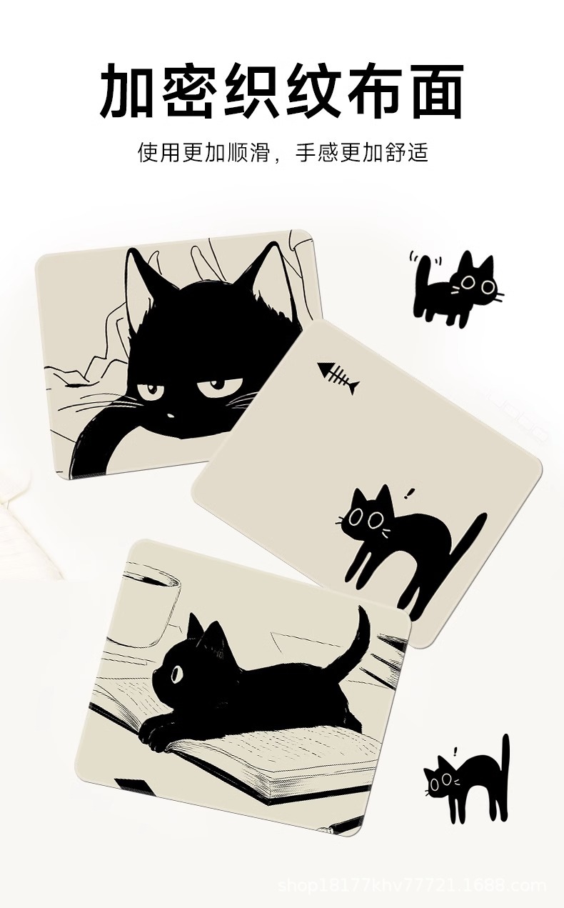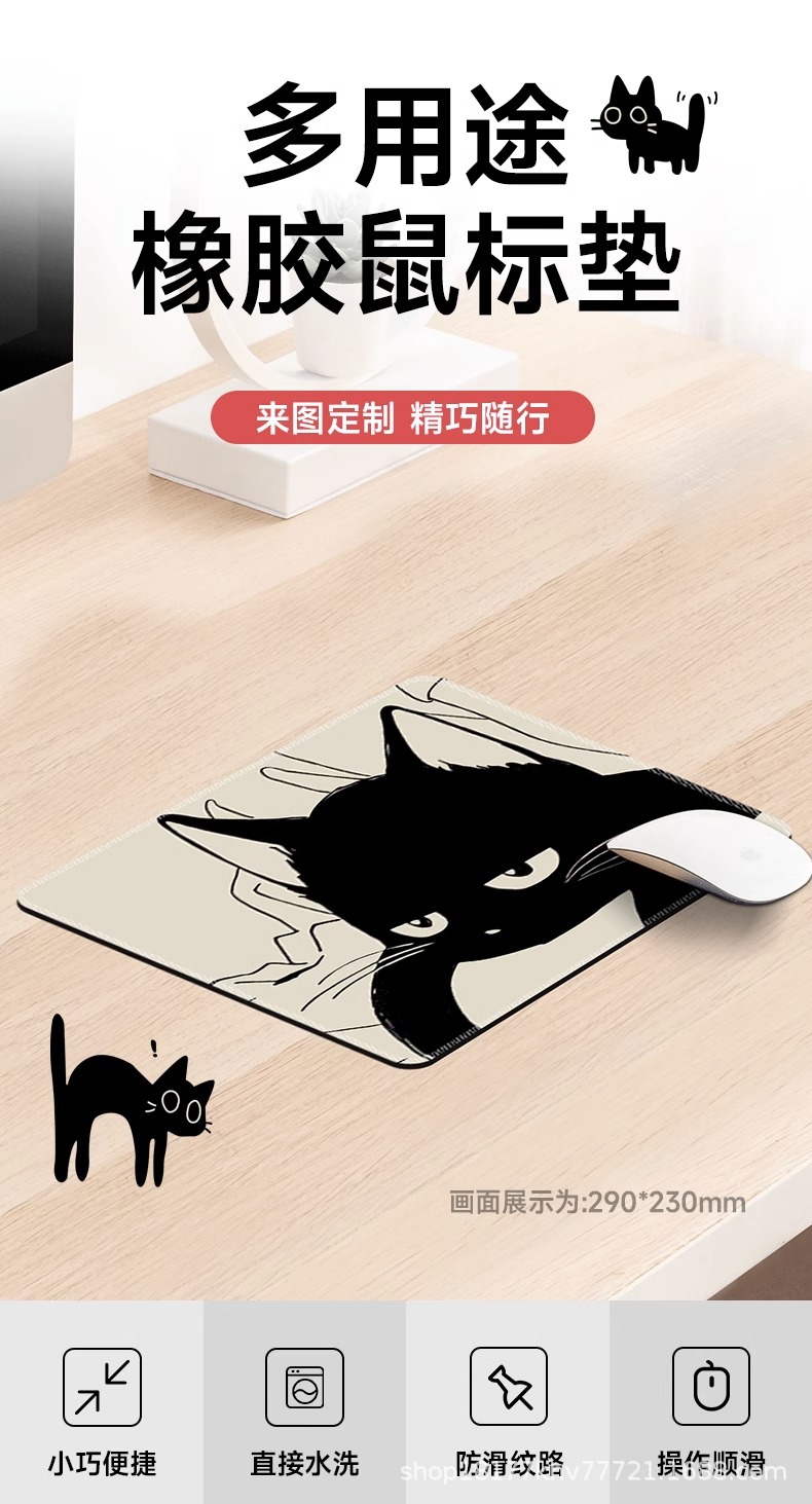 アマゾンと同じ黒猫マウスパッド、オフィスデスク用小型、高品質、縁取り加工、厚手、temu人気商品マウスパッド