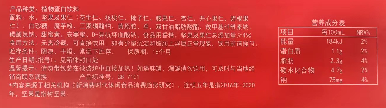 パッケージ仕様 毎日ナッツミルク240ml * 16缶