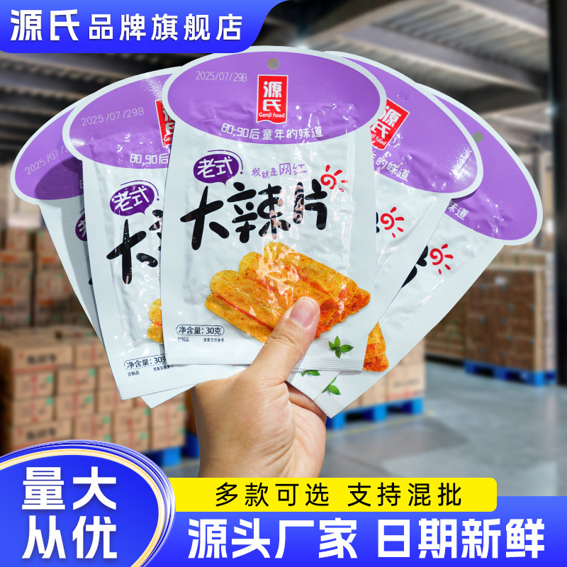 源氏の旧式の大きい辛片の小さい包装の8090ノスタルジックな麻辣スナックの軽食のカジュアルな辛条の食品は大量に卸売りします。