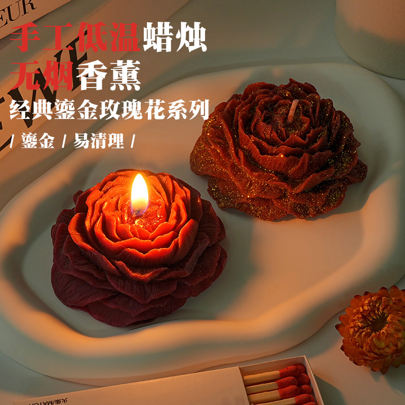 低温調情緒ろうそくの美しい金のバラの牡丹の形のろうそくの大豆ワックスsmカップルのワックスの雰囲気感のおもちゃ