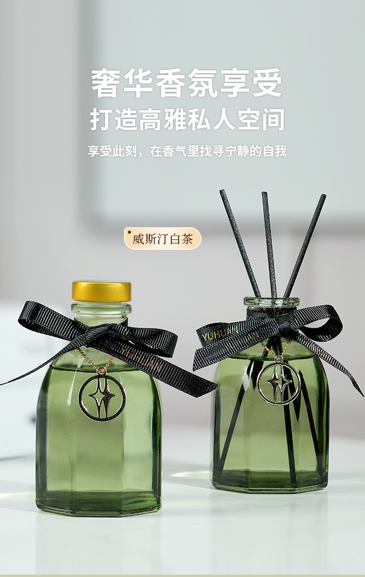 八角形緑瓶藤条無火香薫家庭用寝室持続散香植物精油雰囲気装飾品卸売り