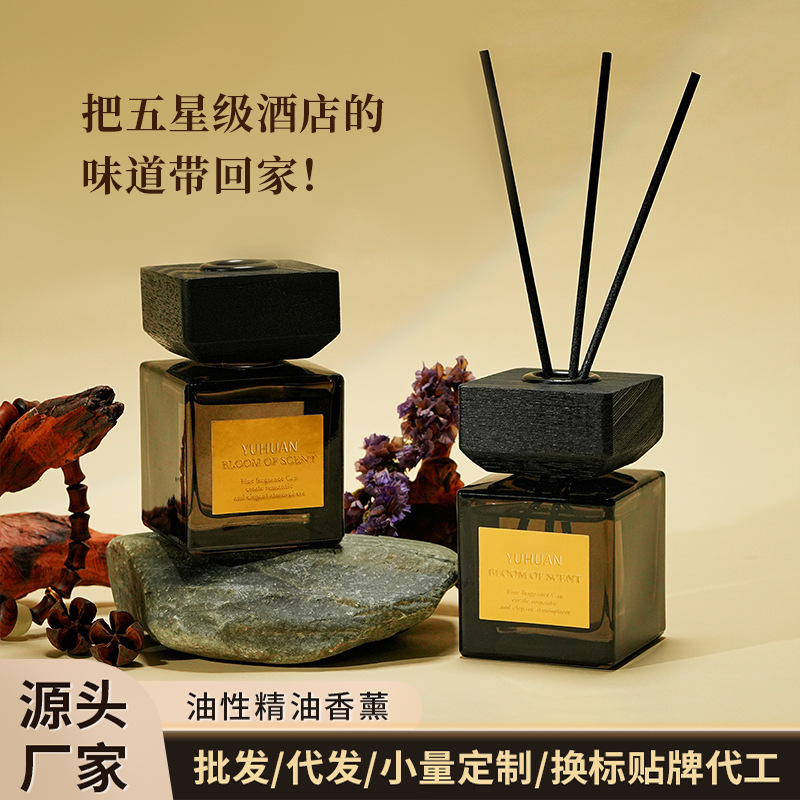 正方形のボトル無火アロマセラピー卸売寝室エッセンシャルオイルフレグランス装飾品ホーム籐アロマセラピーホテルの部屋消臭アロマセラピー