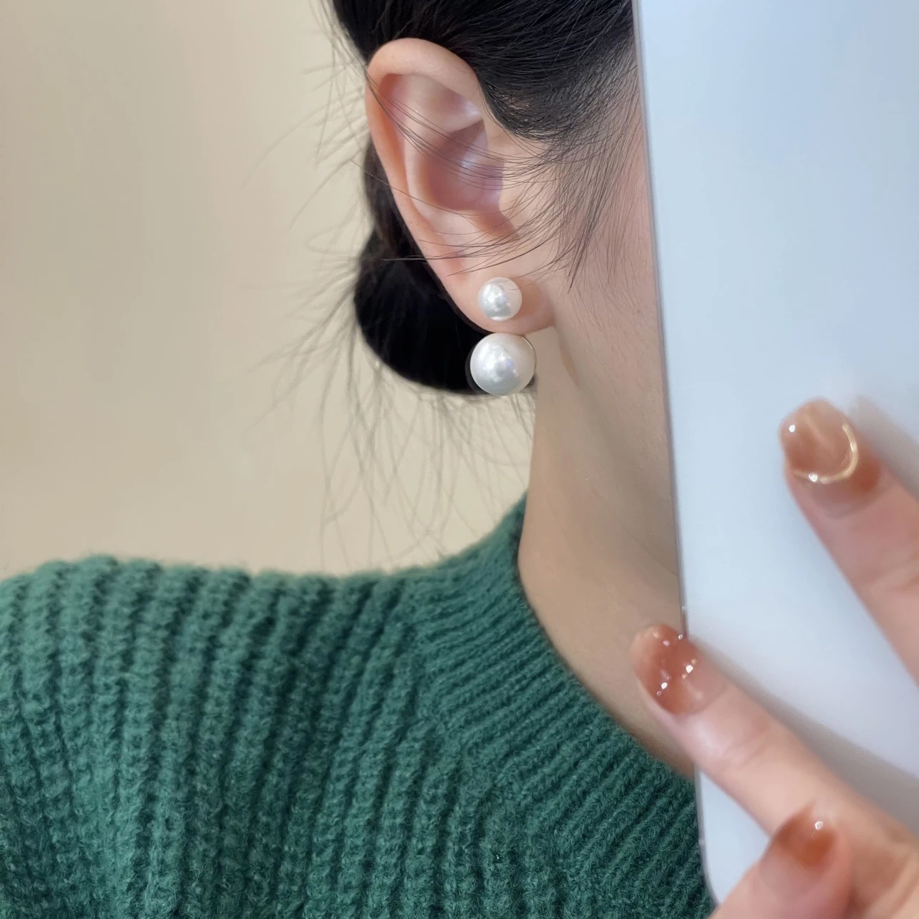 鞠婧は同じタイプのイヤリングの銀色の蝶をかき集めて、ジルコンの耳の飾りをつけます。