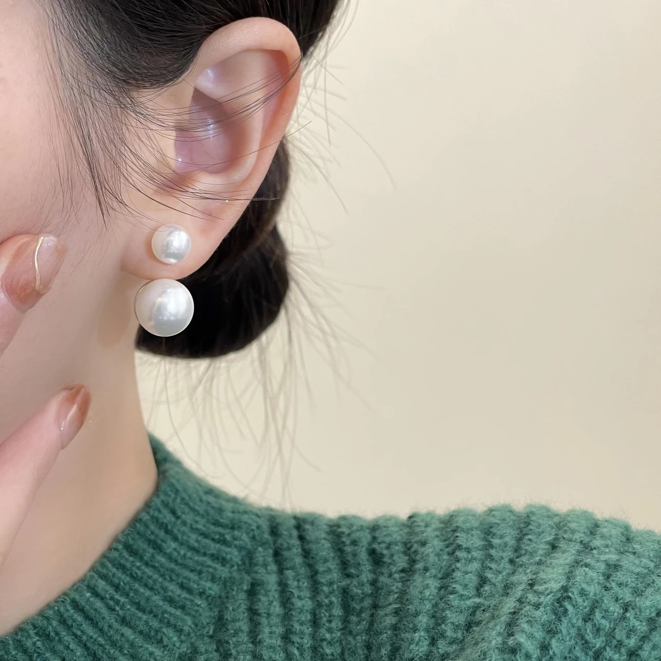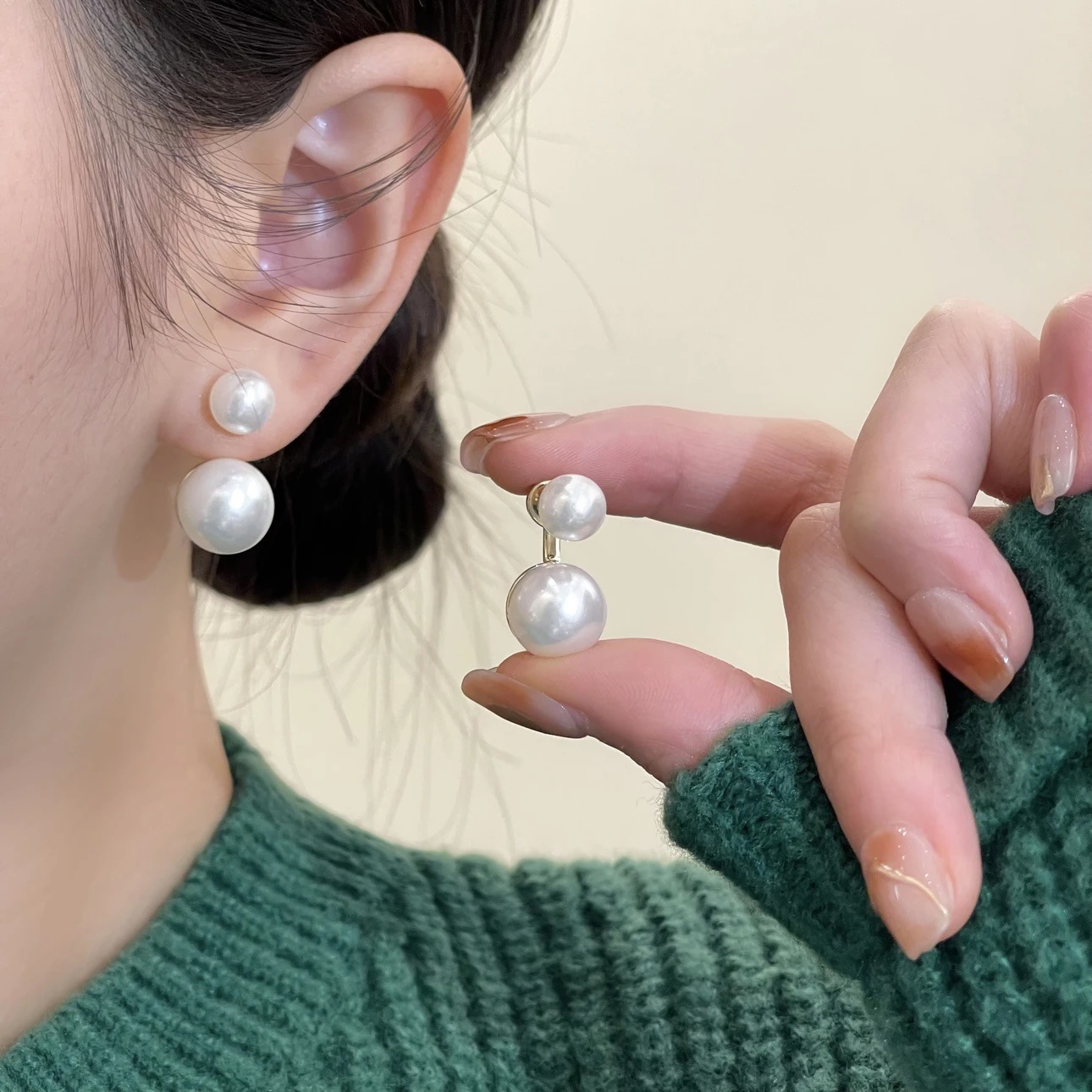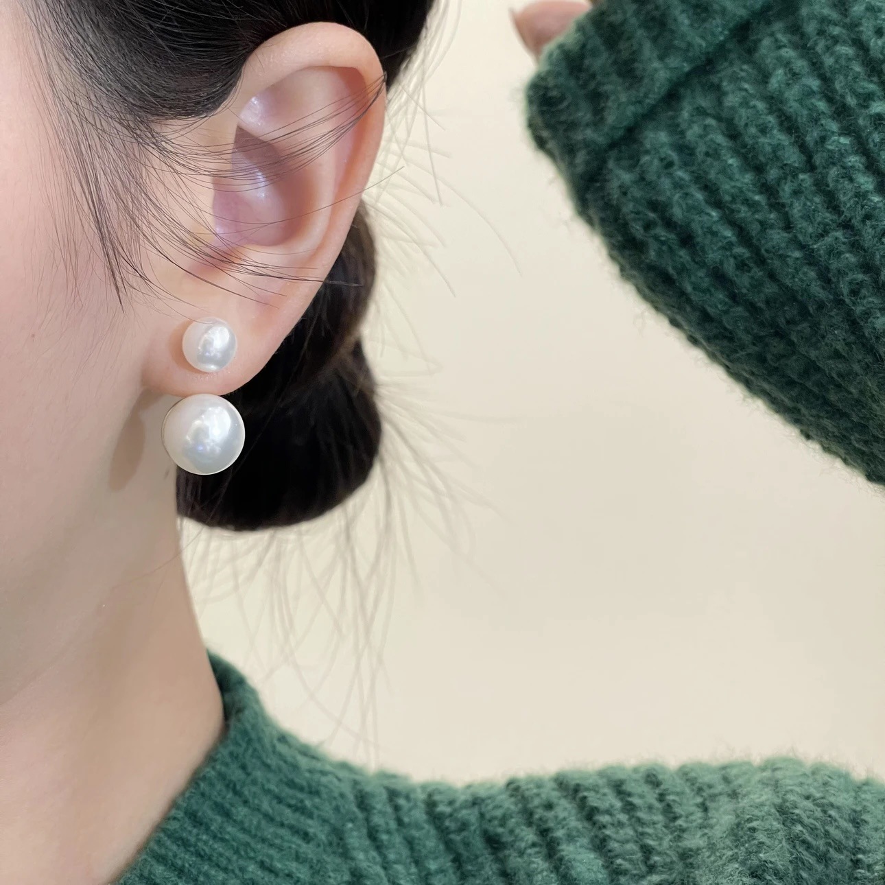冬のレトロな気質の両面の大きい真珠のイヤリングの女性の大衆の独特なデザイン感のピアスの冷たい風の洋風のイヤリング