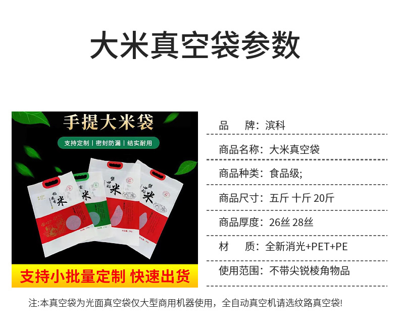 大米袋卸売り手提げ雑穀分注防湿厚米真空袋10斤農家生態米包装袋