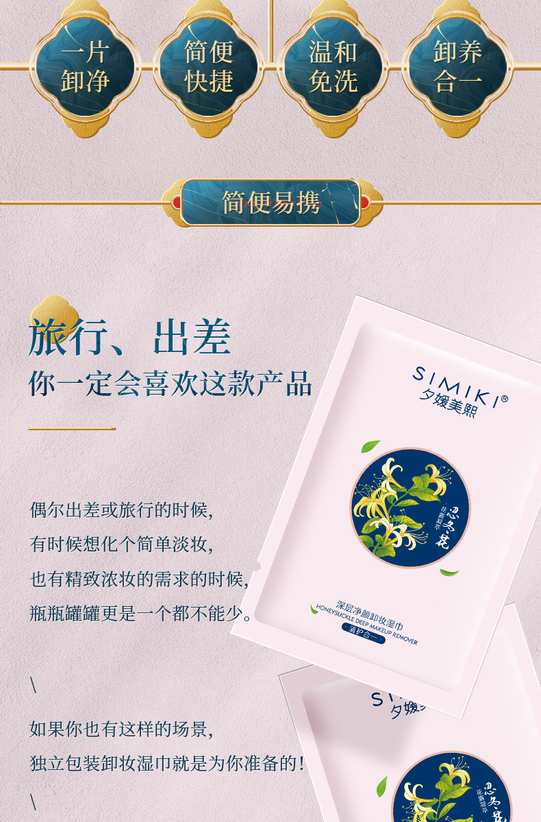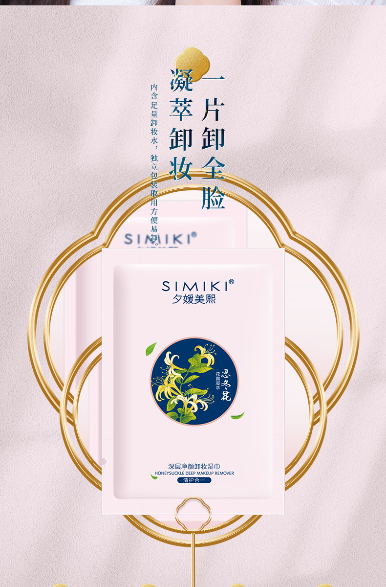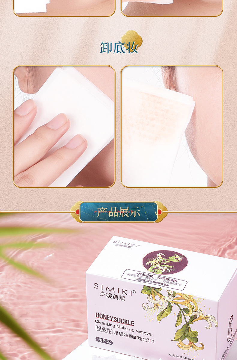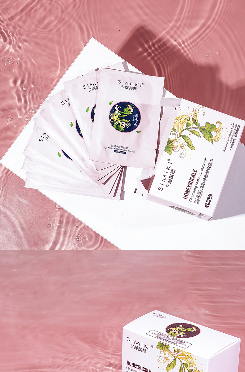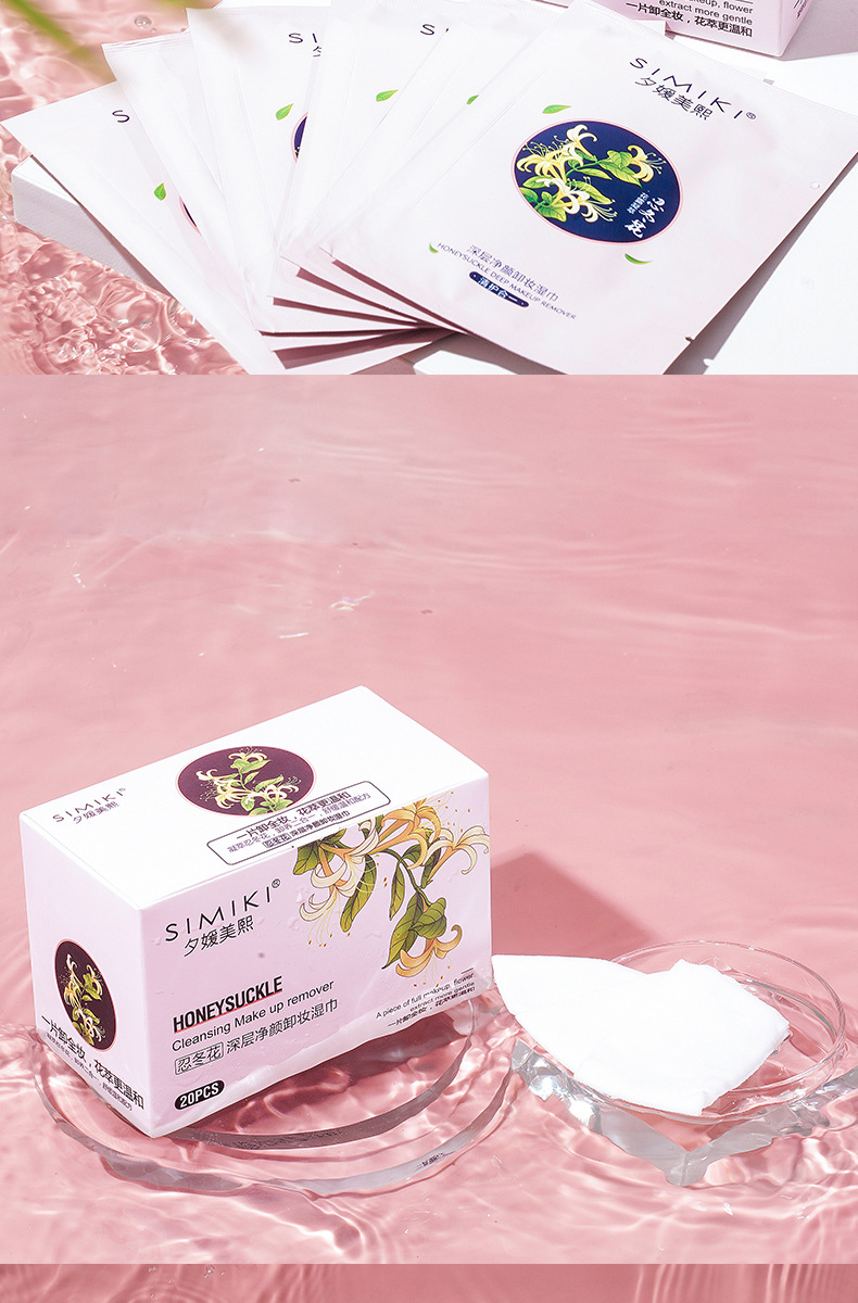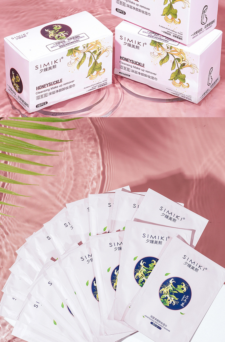 夕媛美熙忍冬花クレンジングウェットティッシュ深層清潔で温和で、目唇顔クレンジング綿タオル卸売りを刺激しない