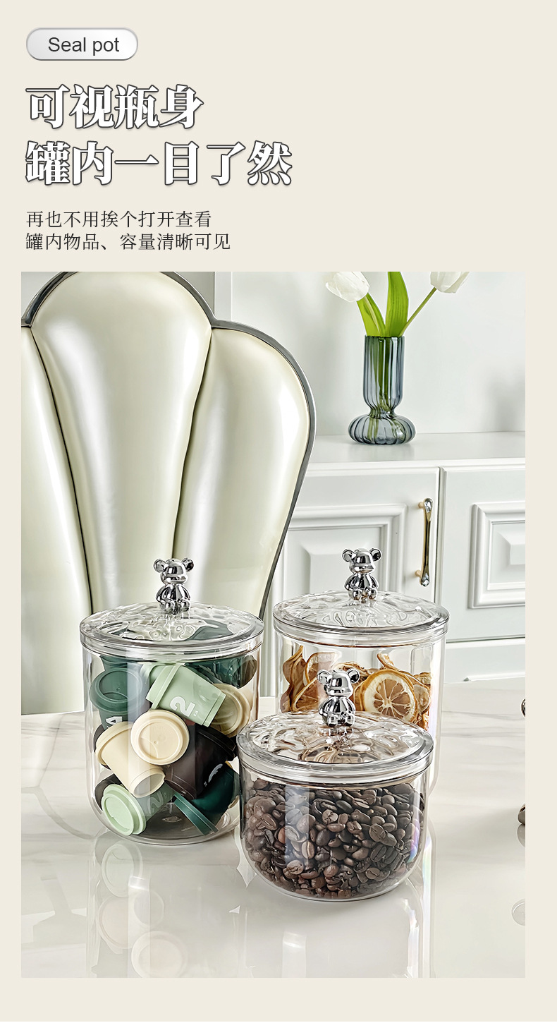 熊の密封缶は軽くて豪華で、高い顔の価値があります。プラスチックの透明な貯蔵タンクは蓋をして防塵します。