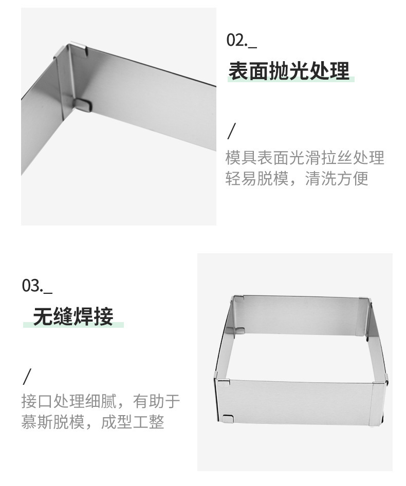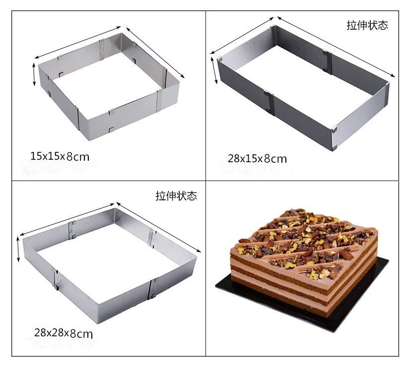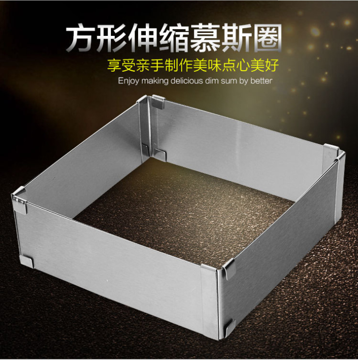 調節可能なベーキングケーキ金型ステンレスケーキツール正方形伸縮ムースリング活動ケーキリング
