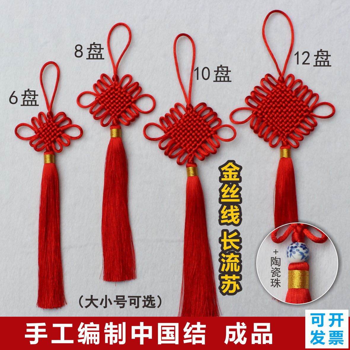 メーカー直販8皿金糸完成品中国結金辺線富貴結帯流蘇装飾ストラップ現物