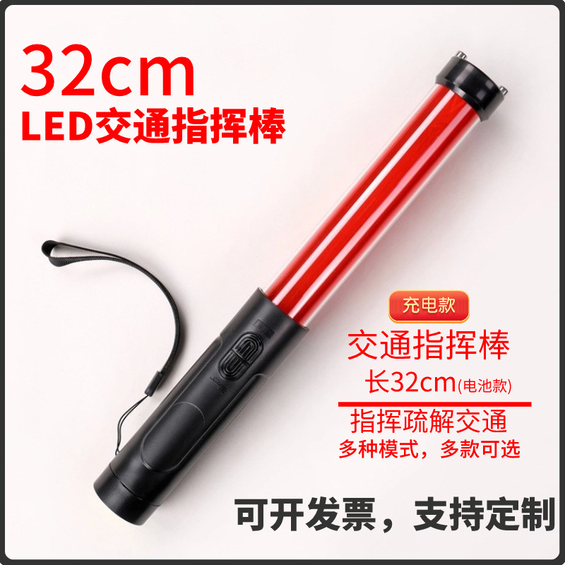 32cm白管赤青充電交通指心棒口笛付き蛍光棒フラッシュ棒警告棒信号棒