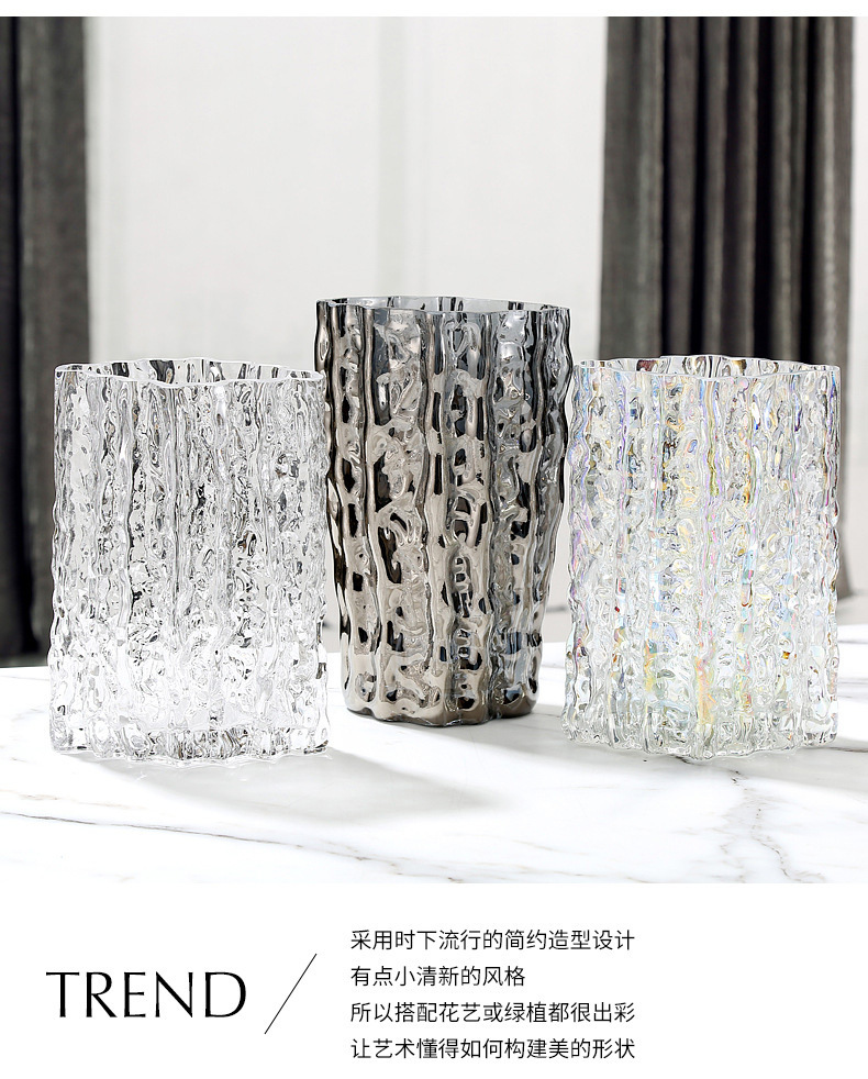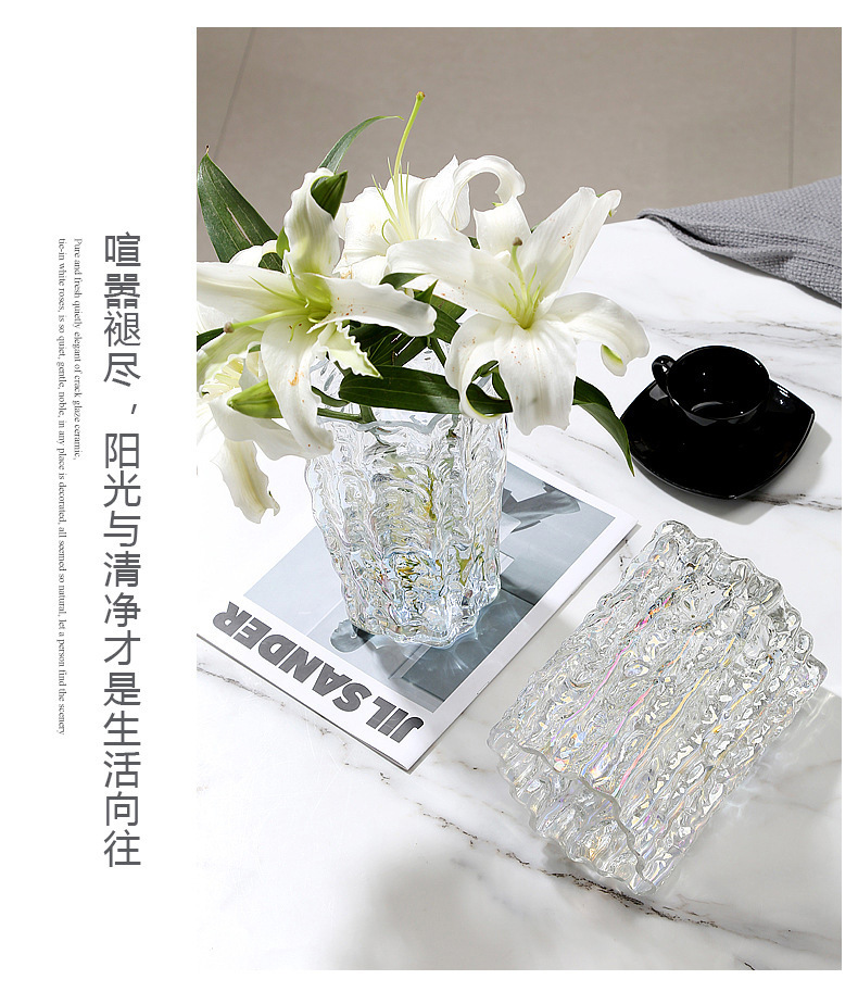 国境を越えて北欧の菱形氷河ガラス花瓶水培生け花家庭の客間に高級感水晶瓶を置く