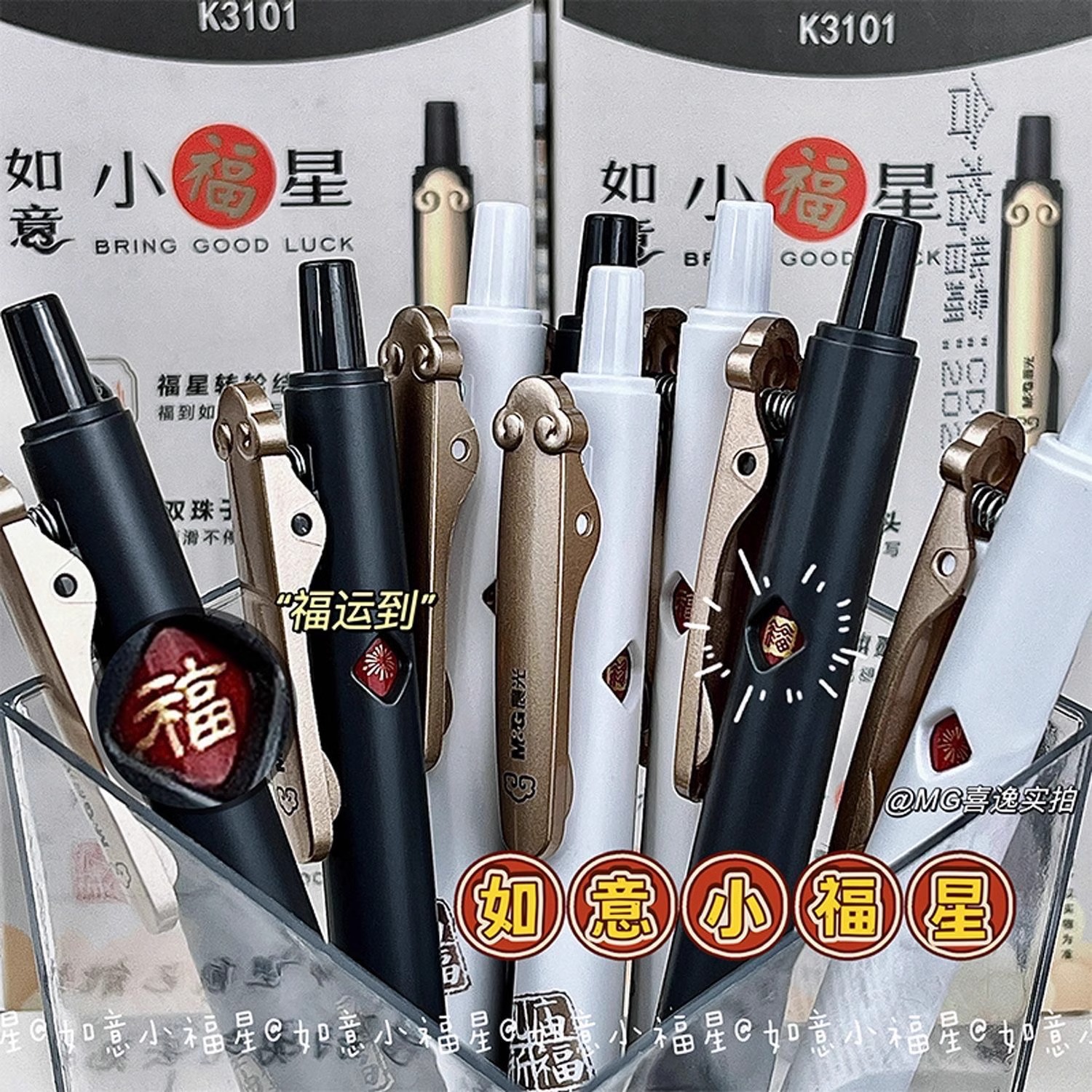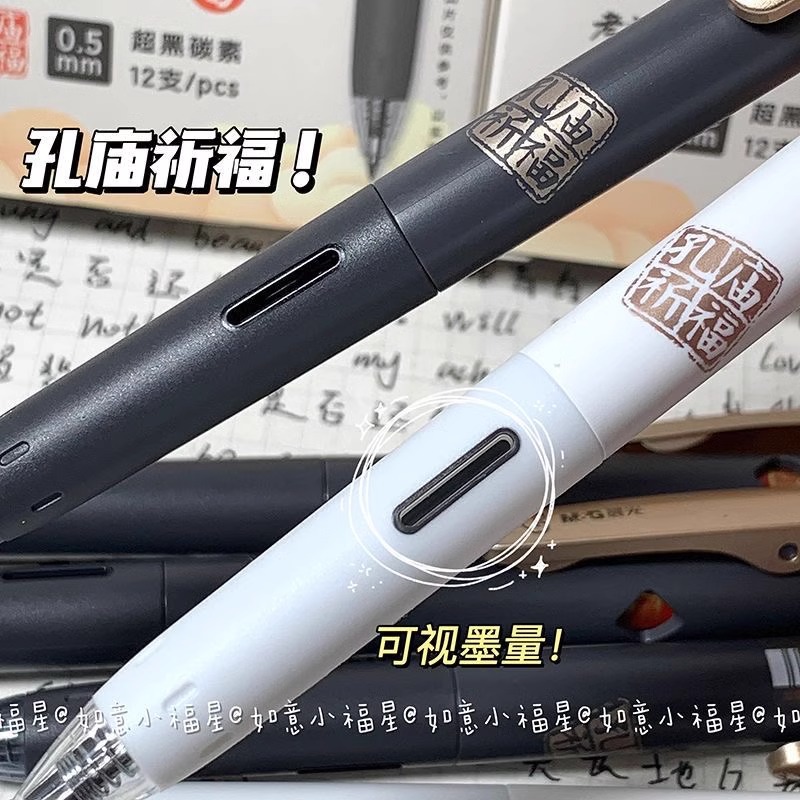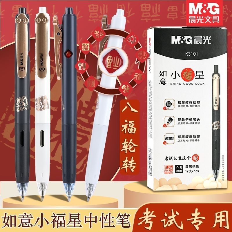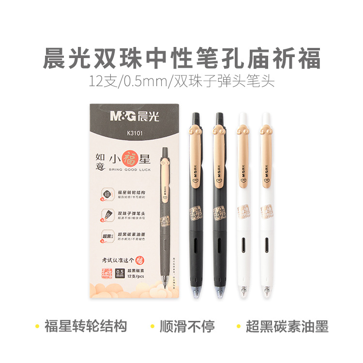晨光K3101双珠考试中性笔学生0.5mm碳素签字笔孔庙祈福速干按动笔