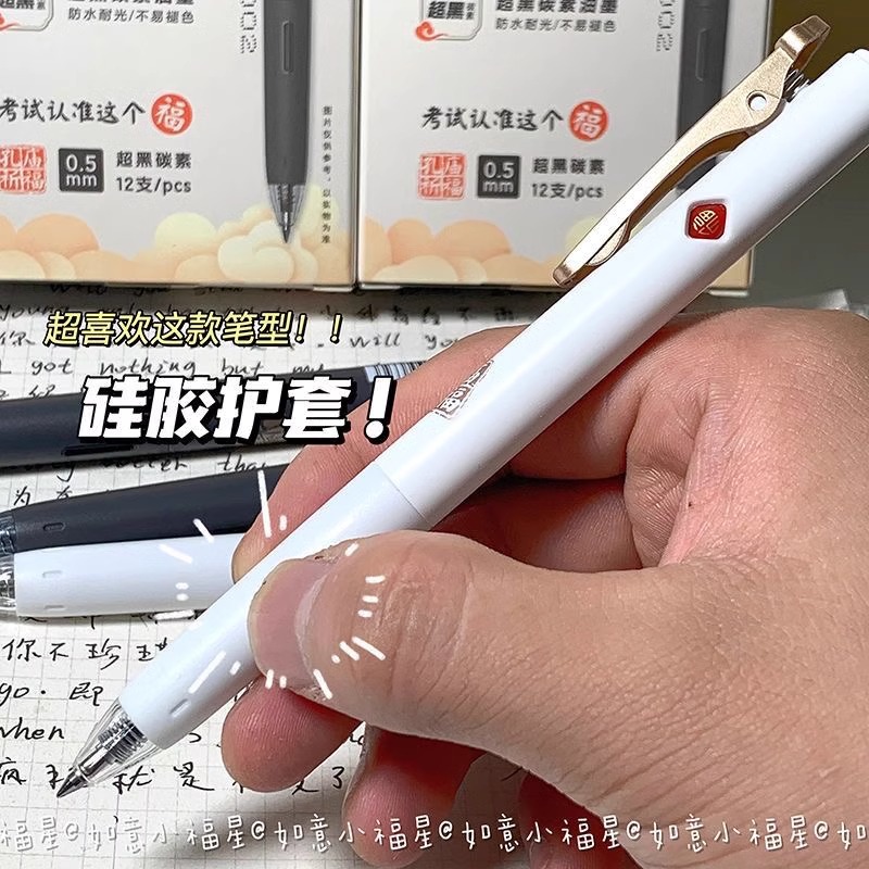 朝の光如意の小さい福星は中性の筆の高い顔の値の学生の双珠を押して問題の筆を磨いて滑らかに炭素の黒色のペンを書きます。