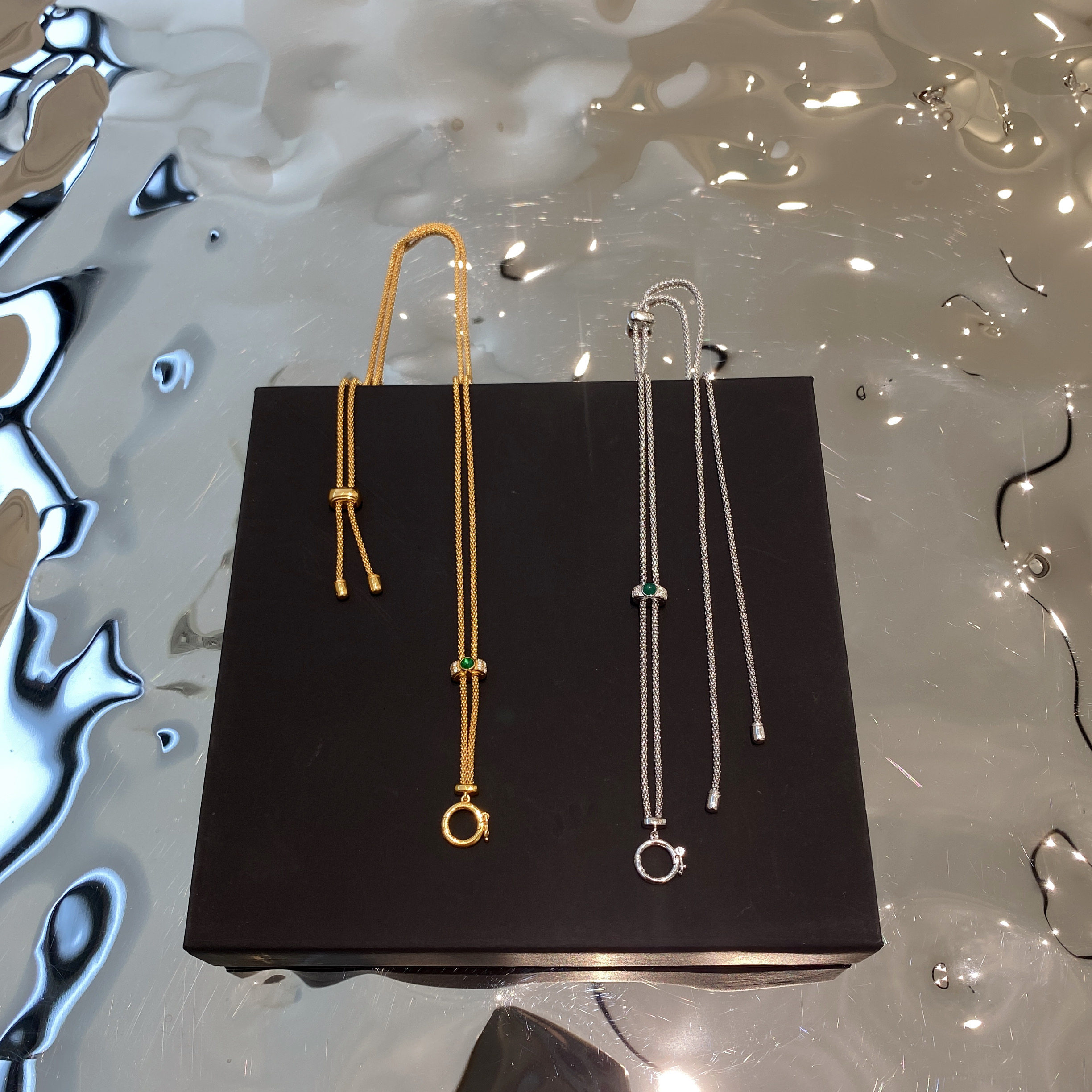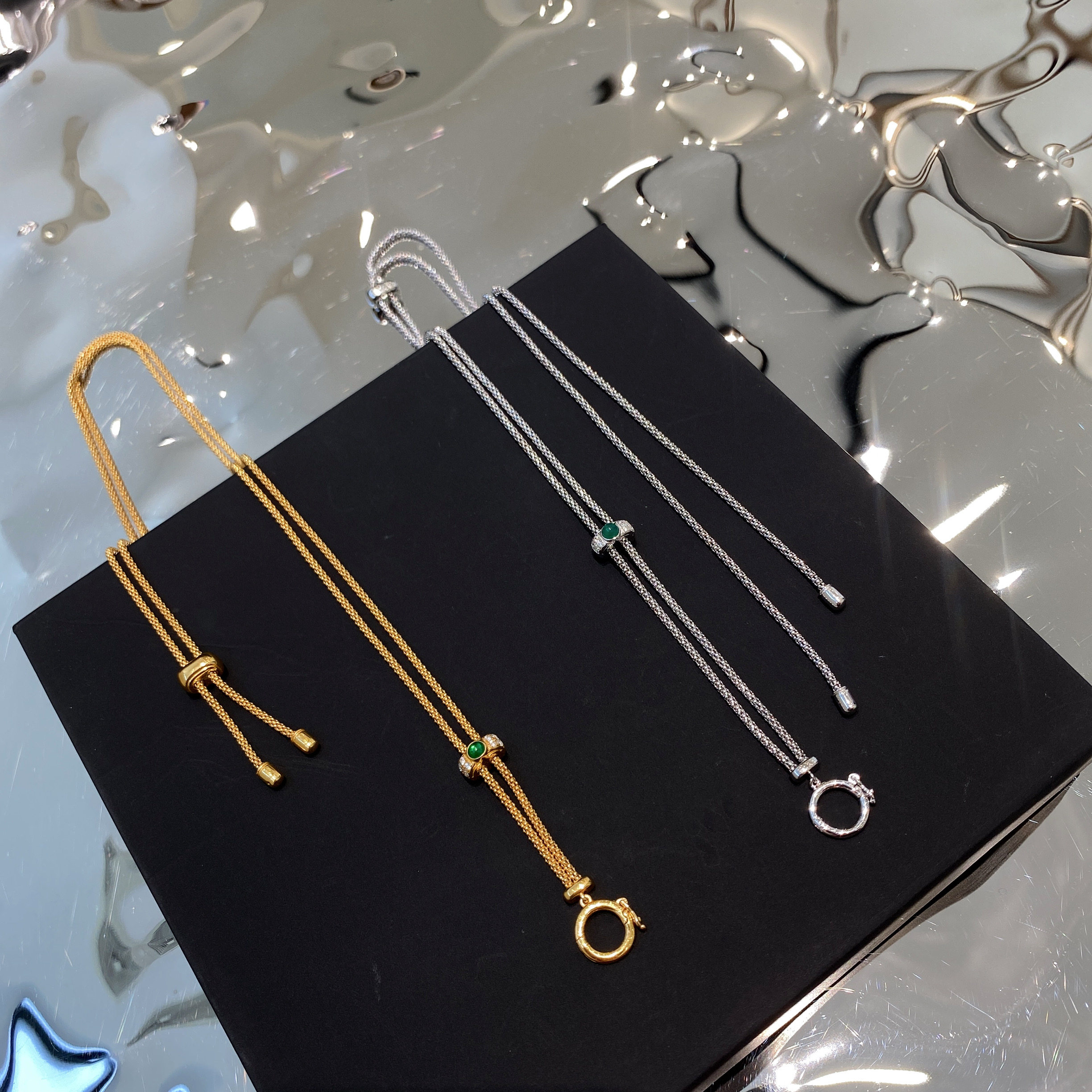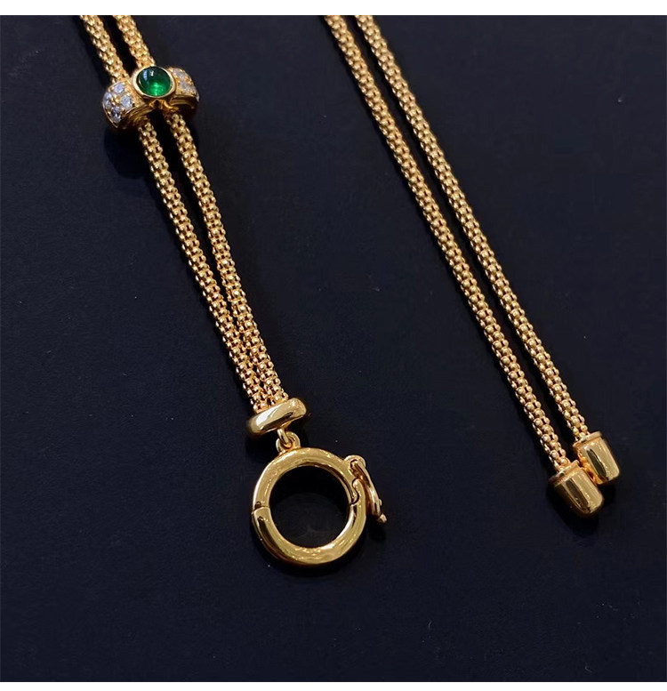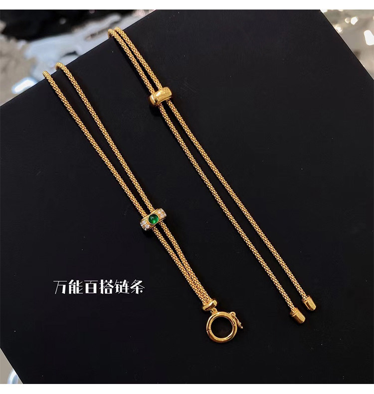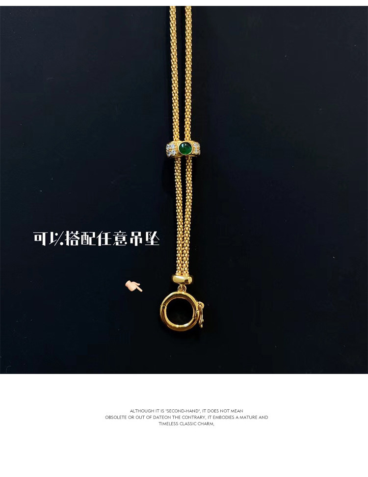 意大利万能项链翡翠古币吊坠搭配毛衣链18k金祖母绿抽拉链万能链