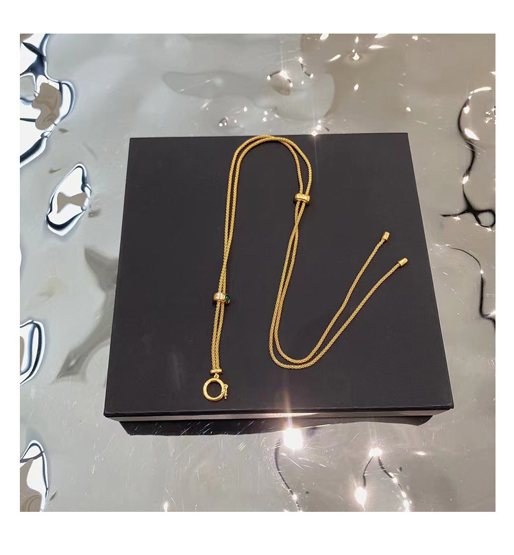 イタリア製ユニバーサルネックレス、翡翠古代コインペンダント、セーターチェーン付き18Kゴールドエメラルド引き出しチェーンユニバーサルチェーン