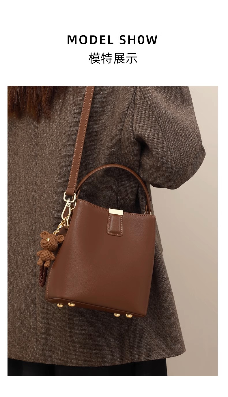香港代理購入2025新型ファッションバッグ斜め掛けショルダーバッグ秋の高級感手提げバケツバッグ