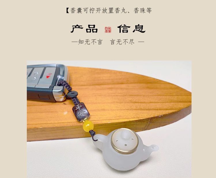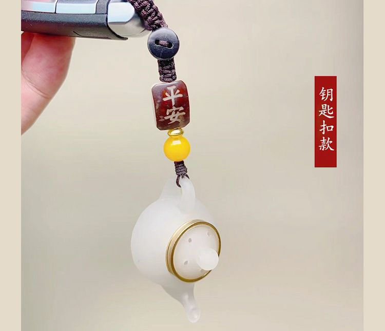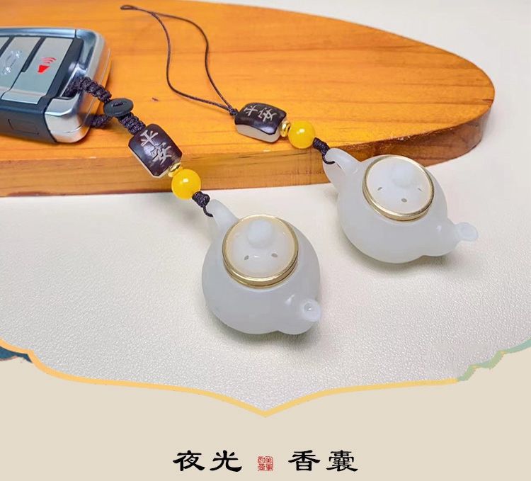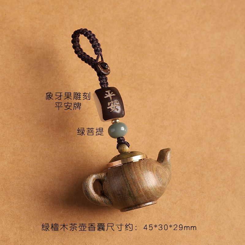緑檀木壺自動車のキーホルダーの透かし彫りの小さいティーポットの香嚢のペンダントのハンドルのペンダントのチェーン