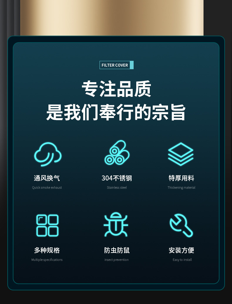 304 平頭ステンレス鋼フードベントネットカバー管排気ファン新空気入口ステンレス鋼外壁排気