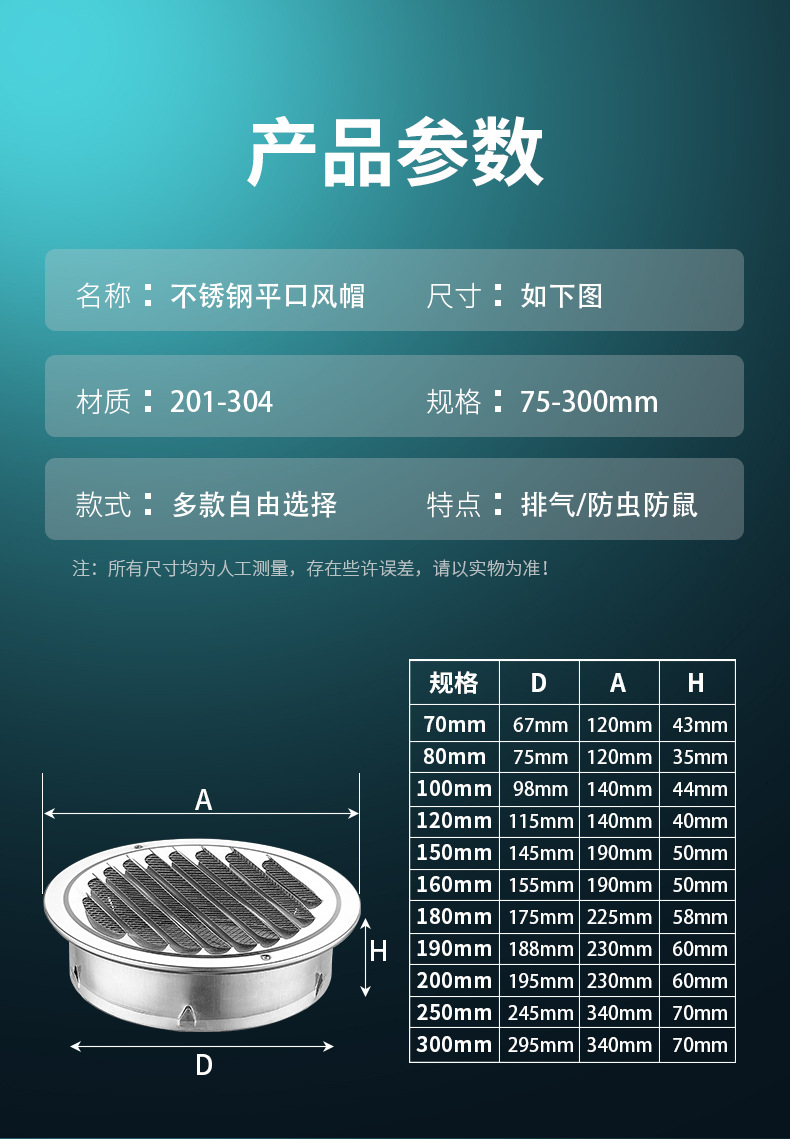 304ステンレスエアキャップ厚い外壁工事防風カバー201通風口雨帽新通風口通風排気キャップ