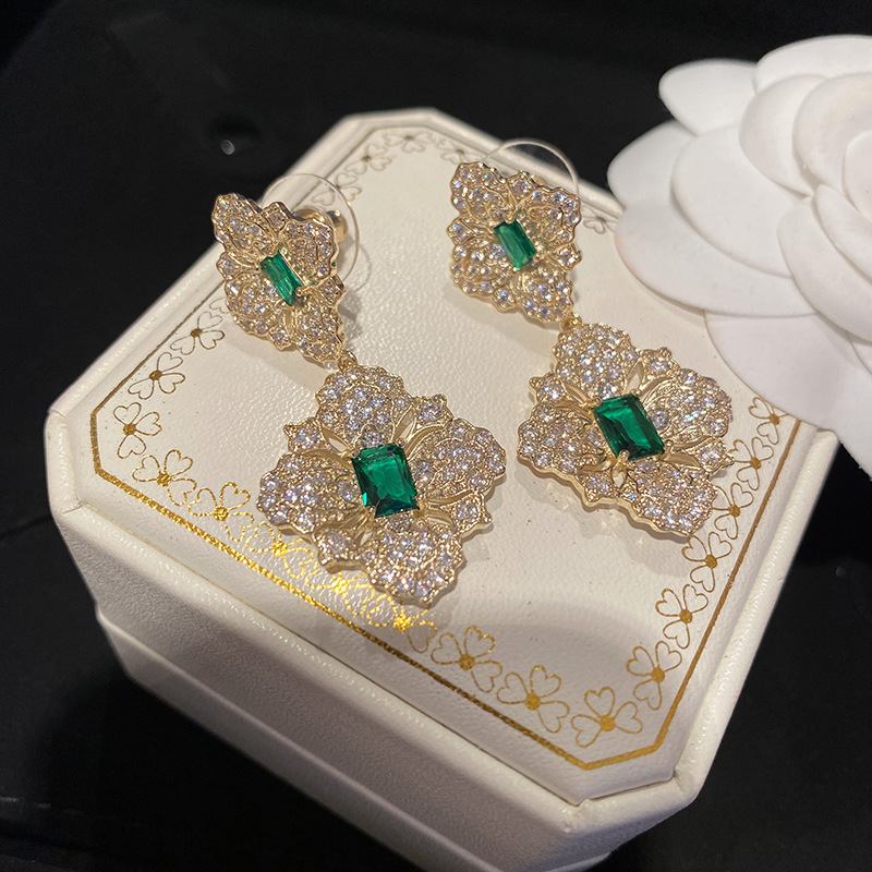バロック風のレトロな層次感の金色の花のピアスの雰囲気のイヤリングの銀の針のイヤリングのエメラルドの復古風