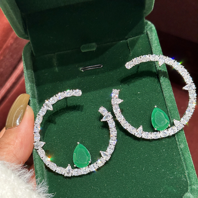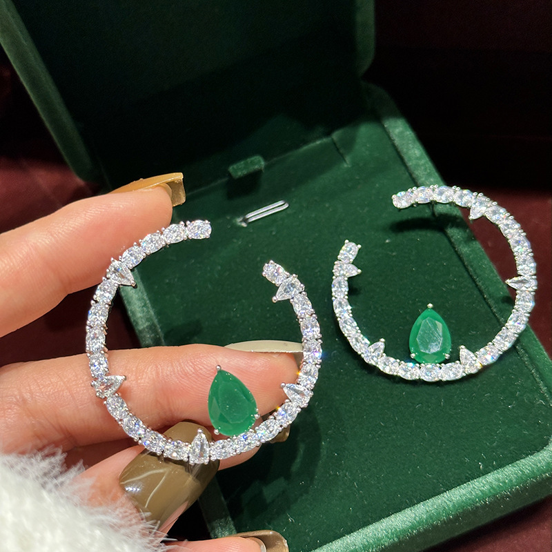 気品豪華なドリルins個性冷淡な風c形に緑の水滴のイヤリングを入れて、超フラッシュファッションの大衆高級感を持っています。