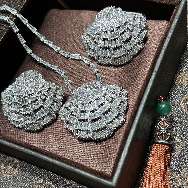 重工の個性的な貝殻のホタテには豪華なイヤリングのネックレスセットがあります。