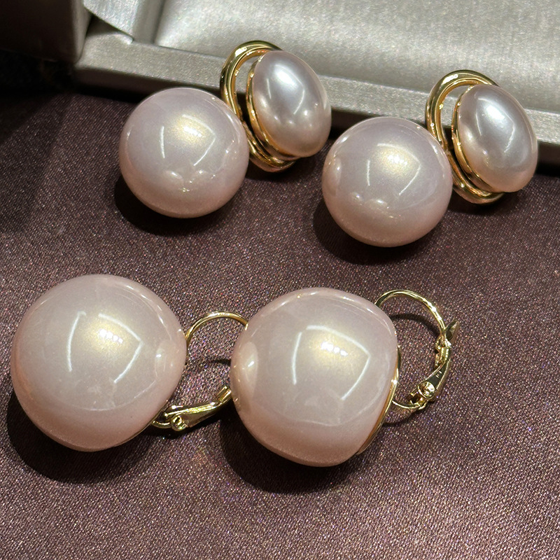欧米の中古ヴィンテージシャンパン色の大きな真珠のイヤリングレトロで高級感のある真珠の新しい豪華なイヤリングの気質
