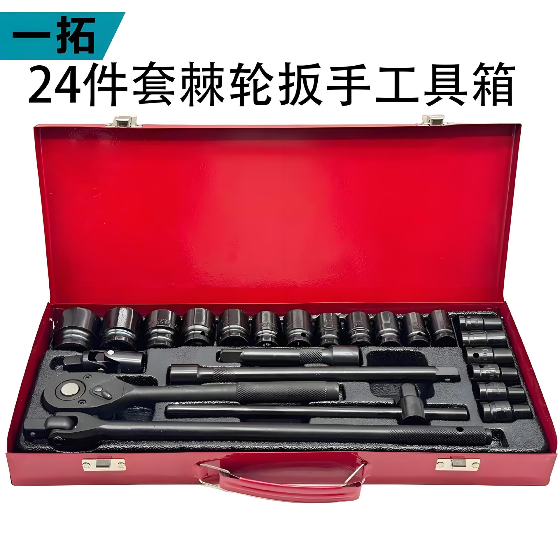 跨境蓝带24件套汽修套筒套装汽车小卡F杆重型1/2大飞套筒扳手