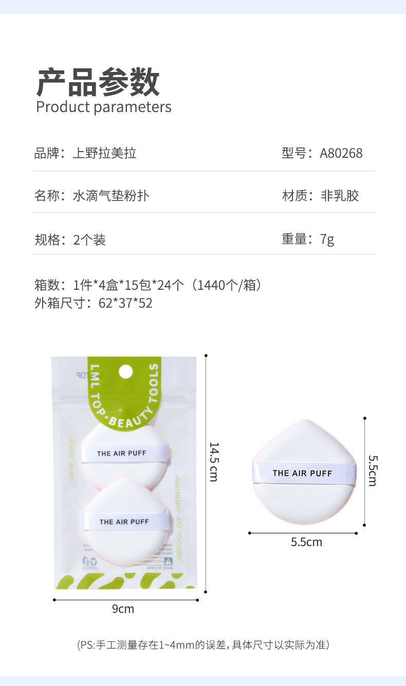 Lmltop水滴エアパッドパフ2個入り親水性非ラテックス製メイクアップパフa80268