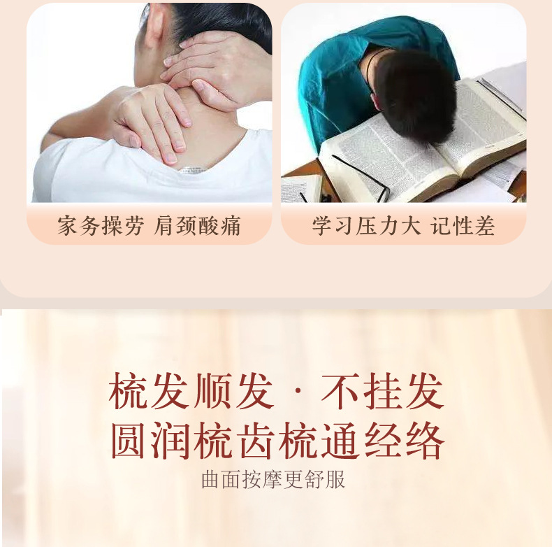 注意:梳子没有染色,颜色和纹理是天然的,每一把和页面展示的都有差异,我们只是随机拿了一个拍照。介意的人勿拍。