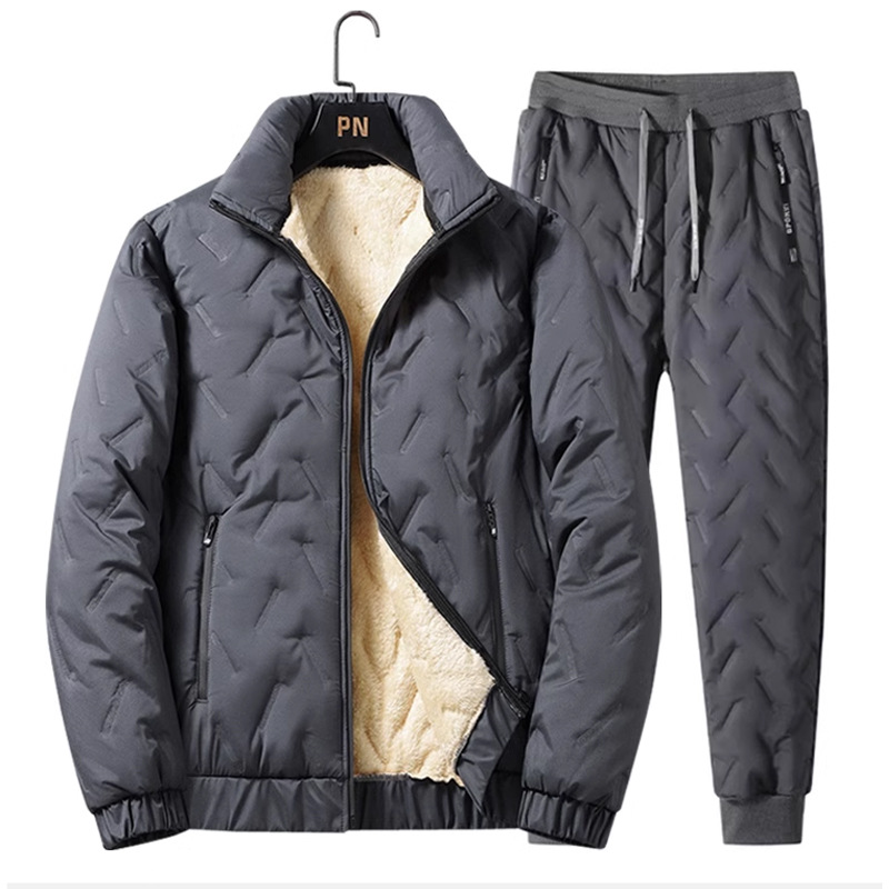 越境冬の綿服セット男性韓国版の大きいサイズの綿服は厚い羊の毛の保温の襟のファスナーのオーバーのズボンを覆います。