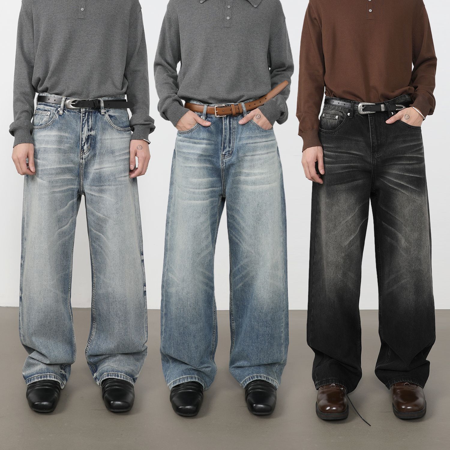 nirben牛仔| 潮牌高级感直筒阔腿水洗百搭牛仔裤男时尚潮流长裤