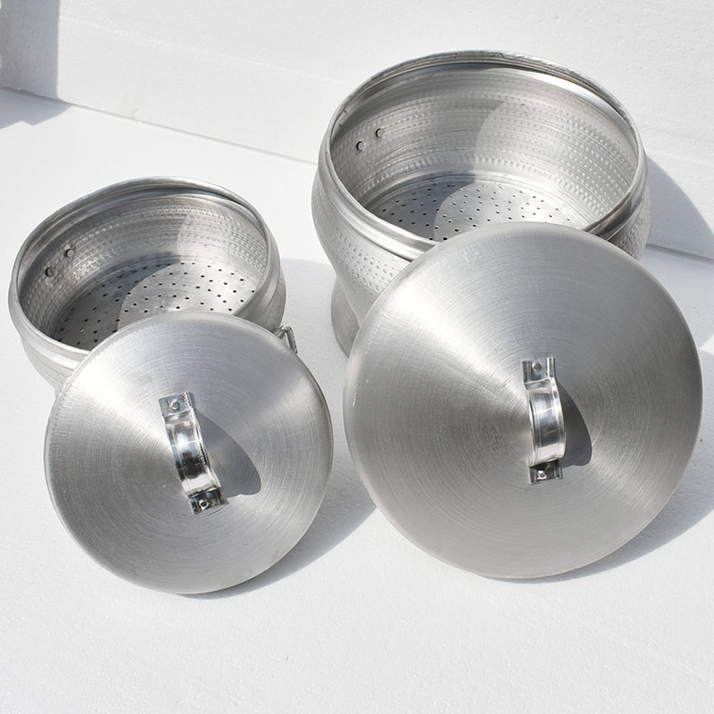 仕様 【手作りアルミ甄子蒸し特別香】,22センチ口径【3斤米4 ~ 8人】高さ16センチ,23センチ口径【4斤米9 ~ 12人】高さ19センチ,25センチ口径【5斤米10-13人】高さ20センチ,26センチ口径【6斤米12-18人】高さ22センチ,28センチ口径【8斤米14-21人】高さ24センチ,30センチ口径【9キロ20 ~ 30人】高さ24センチ,31センチ口径【10キロ22 ~ 30人】高さ27センチ,32センチ口径【20キロ40 ~ 50人】高さ27センチ,36センチ口径【25キロ50 ~ 70人】高さ28センチ,38センチ口径【30キロ60-80】高さ33センチ,41センチ口径【40キロ100-130】高さ41センチ