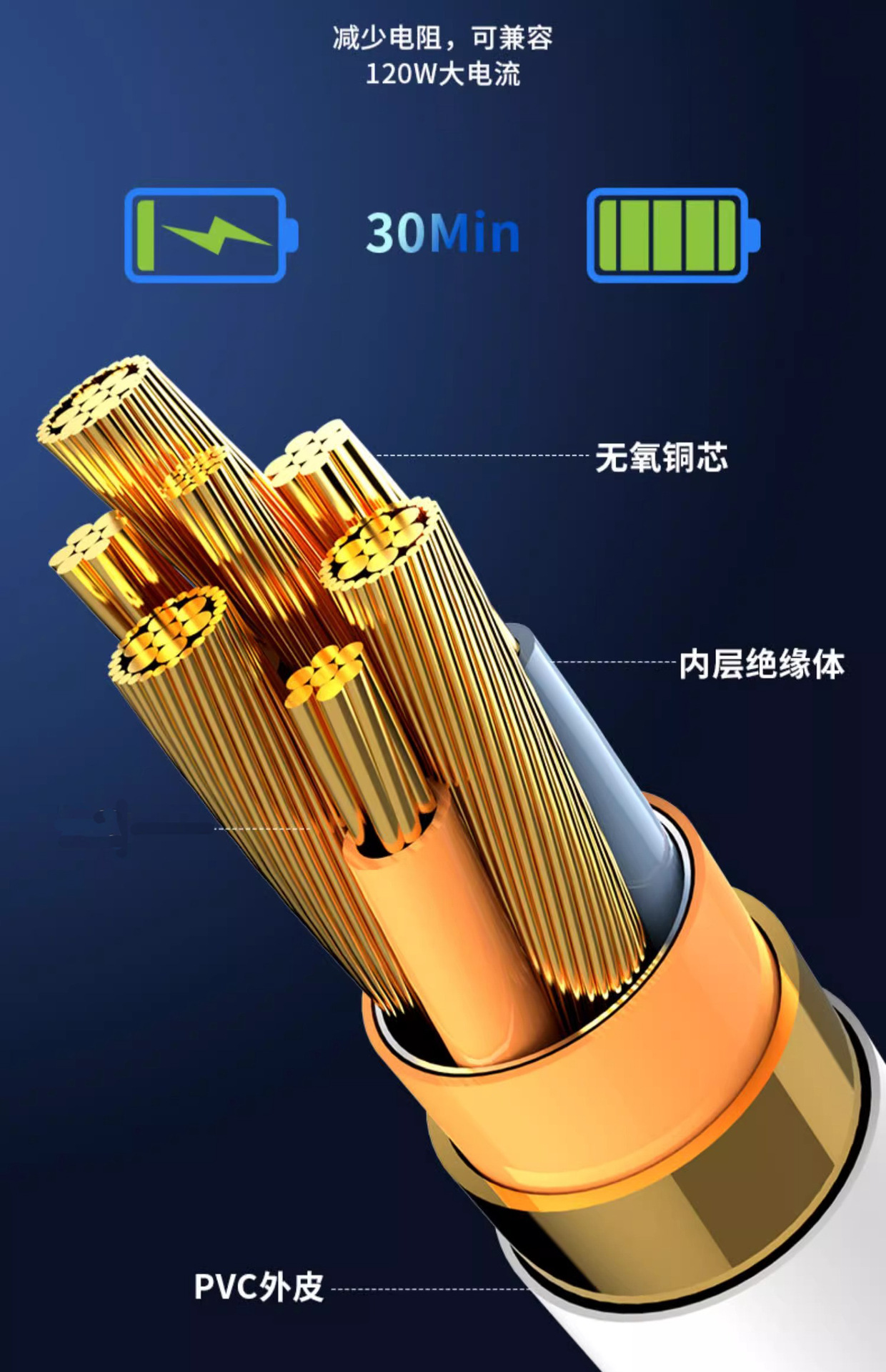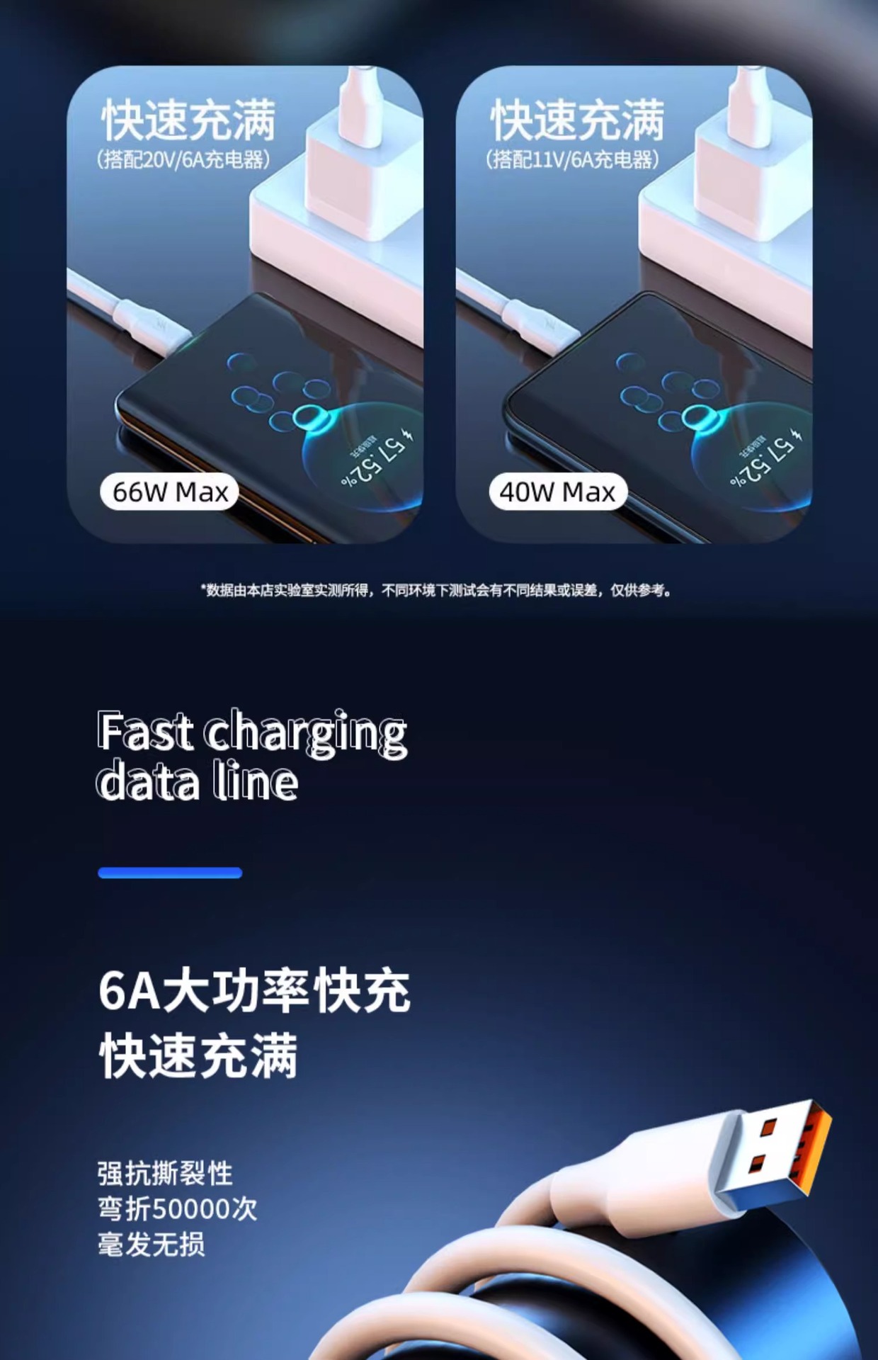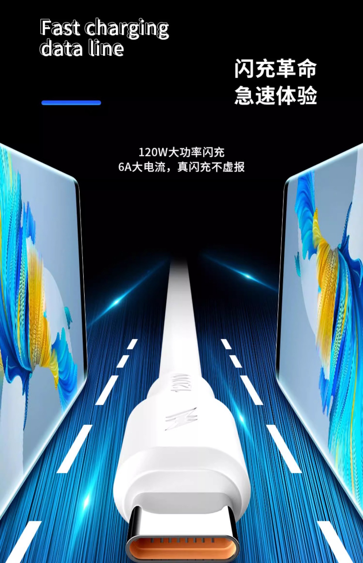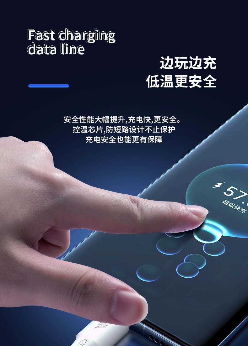 携帯電話ケーブルのアンドロイド充電線typecはアップルtype-c華為快充太神龍120Wを適用している