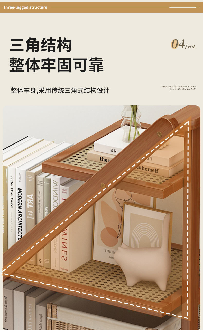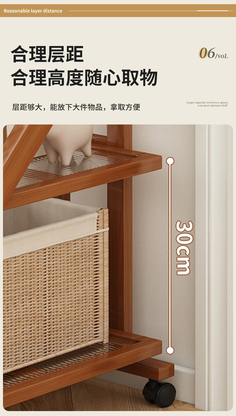 带抽屉桌面置物架仿藤编翻门家用茶水间多层杯架餐边柜实木置物架