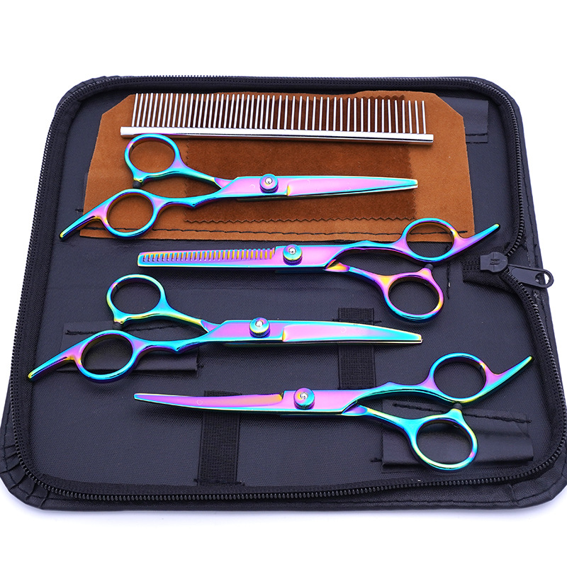 メーカー直供ペット美容ハサミセット平切上曲げ猫犬美容理髪ペットハサミ