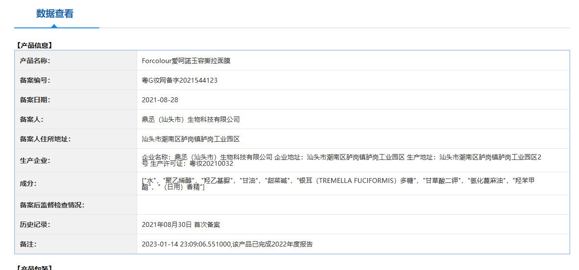 非特定化粧品届出証番号 広東G化粧ネットの予備字2021544123