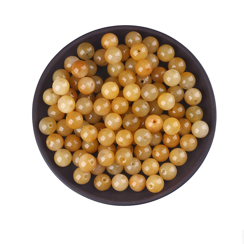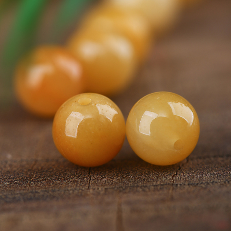 新疆天然老黄玉黄龙玉珠子散珠diy玉石手链手串配黄金金丝玉圆珠